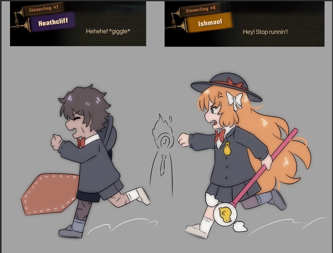 >>562203114>>Why were the sinnerlings grouped up as they were?My guess, a mix of responsible kids and those who need guidance.>>Why were the sinnerlings put at such specific ages?References how much help Dante thinks they need in the real world — Outis seems competent despite her bootlicking, so Dante thinks she can hold her own. As for the youngest here: Don is a bloodfiend, Heathcliff previously distorted and clearly needs Dante to get Cathy back, and even one layer of Gregor getting unwrapped nearly killed Vergilius and put him under observation.>>Why did they replace Ishmael's weapon with a Magical Girl staff?Cute.>>Who else was in the scary T-Rexes besides Vergilius?Charon teaches them, I think. My guess is the Distortion Detective trio.