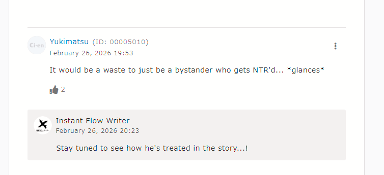 >>562302303>Dev keeps crying about how he can make art for scenes but can't write any erotic situations worth a damnIt's as never ever as it can get.