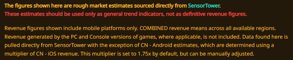I hate the fact that those charts use CN estimates. Do we have a fair comparison for top grossing? Like NA vs NA? KR vs KR? JP vs JP?