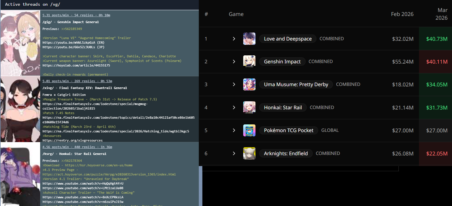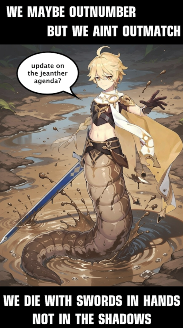 Previous: >>562185349 >Version "Luna VI" "Augured Homecoming" Trailerhttps://youtu.be/mVWLSzkpGzA (EN)https://youtu.be/G6n5Zc3U0Ls (JP) >Current character banner: Skirk, Escoffier, Dahlia, Candace, Charlotte>Current weapon banner: Azurelight (Sword), Symphonist of Scents (Polearm)https://hoyolab.com/article/44155175 >Daily check-in rewards (permanent)https://webstatic-sea.mihoyo.com/ys/event/signin-sea/index.html?act_id=e202102251931481&lang=en-us >Redeemable Codes with Primogems (all regions): https://genshin.mihoyo.com/en/giftGENSHINGIFT8BHA0KFRG94KMIXF44DAP7HW >Useful Links (Wiki, Simulators, Maps, Character Builds, /gig/ friendlist, Third-Party Tools, etc.)https://rentry.org/giglinks /gig/ OP pastebin (use this if making new thread):https://pastebin.com/ca0zseQ9