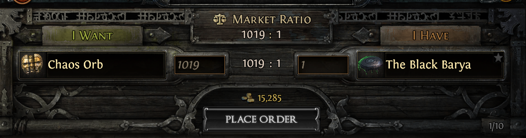 reposting because i don't like being hte last reply in a general and being ignored>spend 40,300 chaos spent on 40 black barya>run 40 said barya>returns 24 belts>sell each belt 2100 chaos each (unid)>10,100 chaos profit in less than 30 minutes>66 divs/hourit's not much but it's honest work>>562205702honestly i cant afford to keep running them unless i sell them, maybe if i get a surplus of like 2000+ div i can start HODLing but right now the profit margin is so good that selling right away is the answer