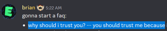 >>562298393This is like a anon on 4chan giving you a .exe download file and saying trust me bro my name is brian