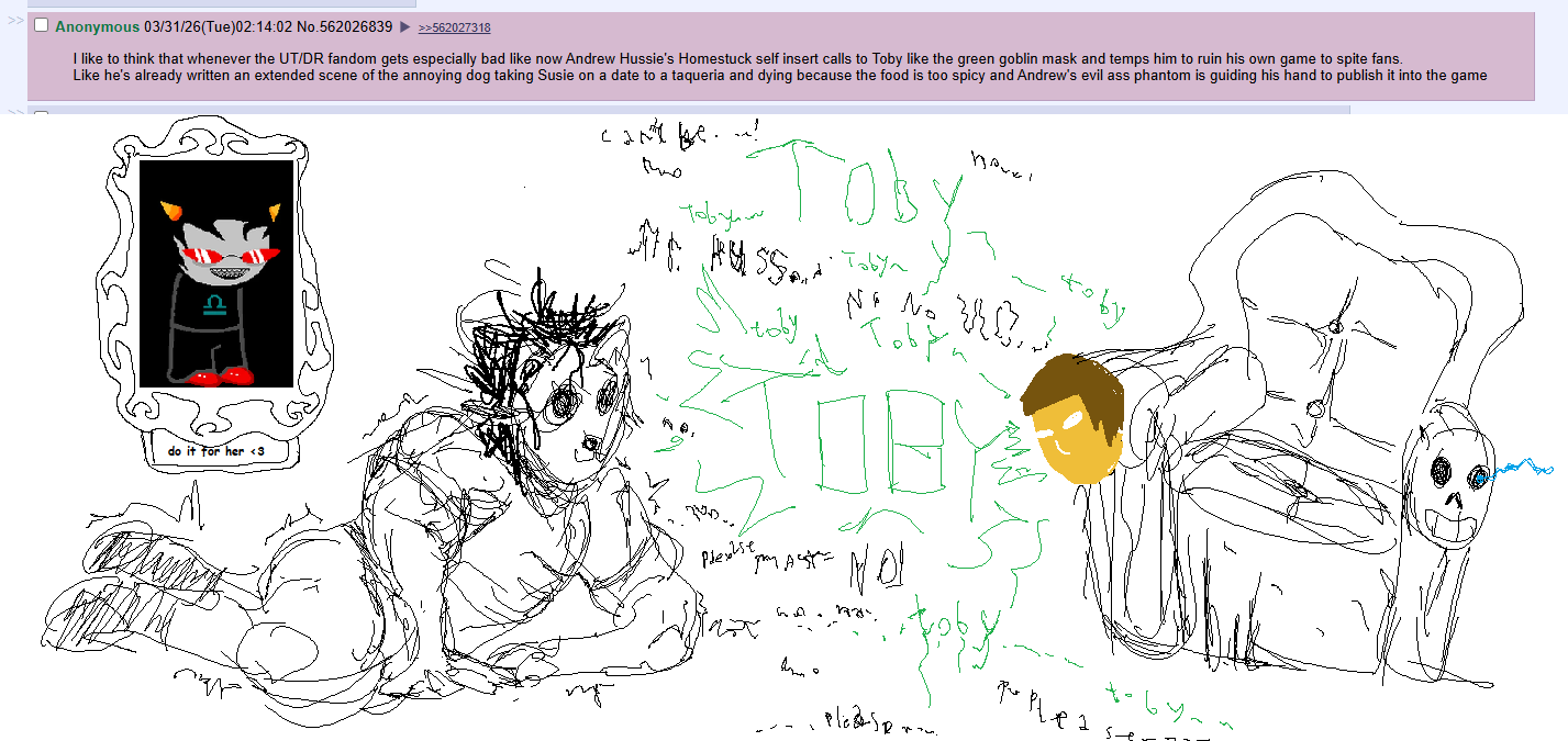 >>562206186AND his Alphys blobs which he stopped posting because people immediately recognized it was him.