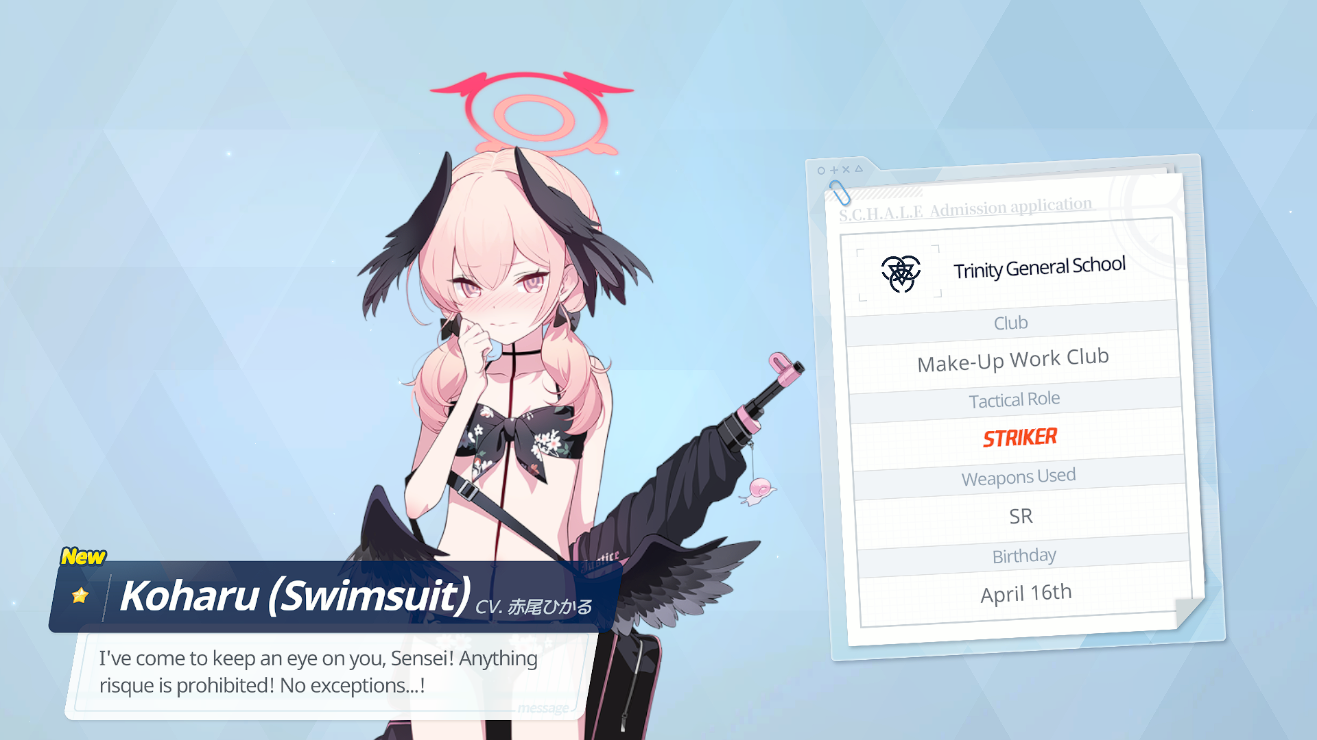 Previous Thread: >>562185954>Guides, Resources and useful links:https://rentry.org/bagguides>/bag/Circles/Clubs/Friends:https://rentry.org/holdingthebag>4koma, Manga, Side Content, PVs & Shortshttps://rentry.org/bacontent>>(JP) – JST>Banners:>4/1 After Maint – 4/15 10:59Akane (School)Seia (Limited)Asuna (School – Limited)Karin (School – Welfare)Toki (Bunny)>News:Patch notes: https://bluearchive.jp/news/newsJump/645>Events:Code: BOX - The Shadow Approaching Millennium – 4/1 After Maint – 4/15 10:59Balancing Schale's Books with the General Student Council – 4/15 11:00 – 4/21 10:59>Content:Joint Firing Drill (Breakthrough) – 4/1 After Maint – 4/8 3:59Grand Assault: Perorodzilla (Field – Torment w/Heavy & Special Armor) – 4/8 11:00 – 4/15 3:59Limit Break Assault: Tiphareth (Indoor – w/Elastic Armor) – 3/19 11:00 – 4/21 3:592x Lesson/Scrimmage – 4/1 4:00 – 4/8 3:592x Hard – 4/8/ 4:00 – 4/15 3:592x Commissions/Bounty – 4/15 4:00 – 4/21 3:59>>(GLOBAL) – UTC>Banners:>3/31 2:00 – 4/7 1:59SubaruUi (Swimsuit – Limited)Hinata (Swimsuit – Limited)ReisaMine>News:Patch notes: https://forum.nexon.com/bluearchive-en/board_view?thread=3403455>Events:My Office: https://bluearchive.nexon.com/user/myoffice>Content:Grand Assault: Hieronymus (Urban – Torment w/Special & Light Armor) – 3/31 2:00 – 4/6 18:59Limit Break Assault: Tiphareth (Indoor – w/Elastic Armor) – 3/11 2:00 – 4/6 18:592x Normal – 3/30 19:00 – 4/3 18:592x Hard – 4/3 19:00 – 4/6 18:592x Bounty – 4/6 19:00 – 4/13 18:592x Account EXP – 4/10 19:00 – 4/12 18:592x Normal/Hard – 4/13 19:00 – 4/20 18:592x Account EXP – 4/17 19:00 – 4/19 18:592x Lesson/Scrimmage – 4/20 19:00 – 4/27 18:592x Bounty – 4/27 19:00 – 5/4 18:59