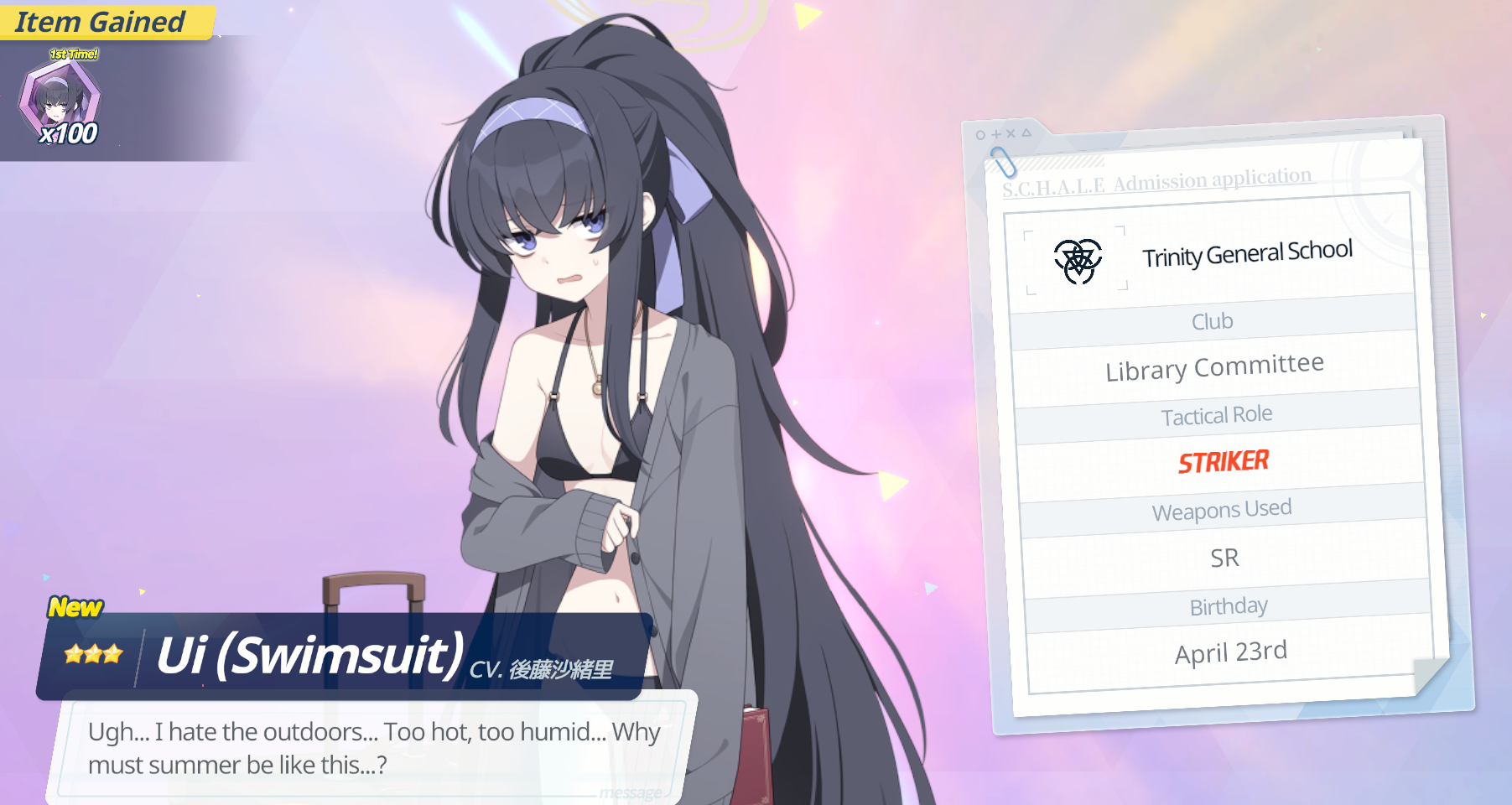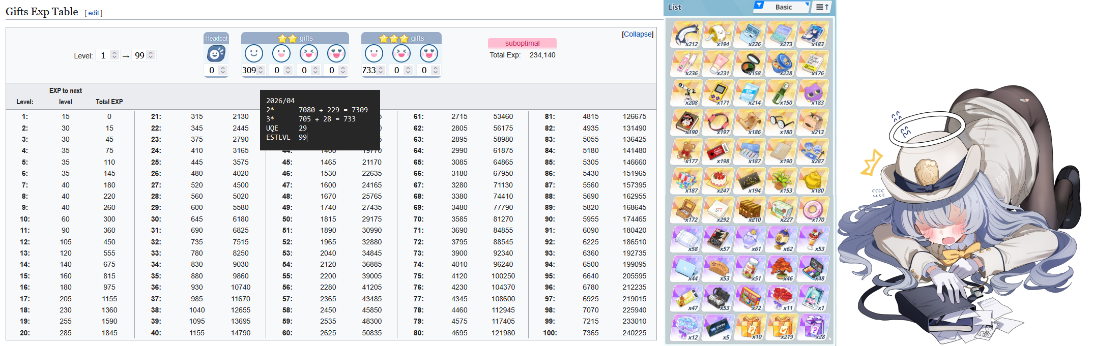 The April fools affection check is currently open. If you haven't already please post your maxed studentwife with 30+ affection. Including her alt is optional and a nice flex but her base is what I'm looking for.>Can I post her if she isn't maxed?Of course, your work in progress is always a joy to see. Remember the climb to the peak isn't a race.