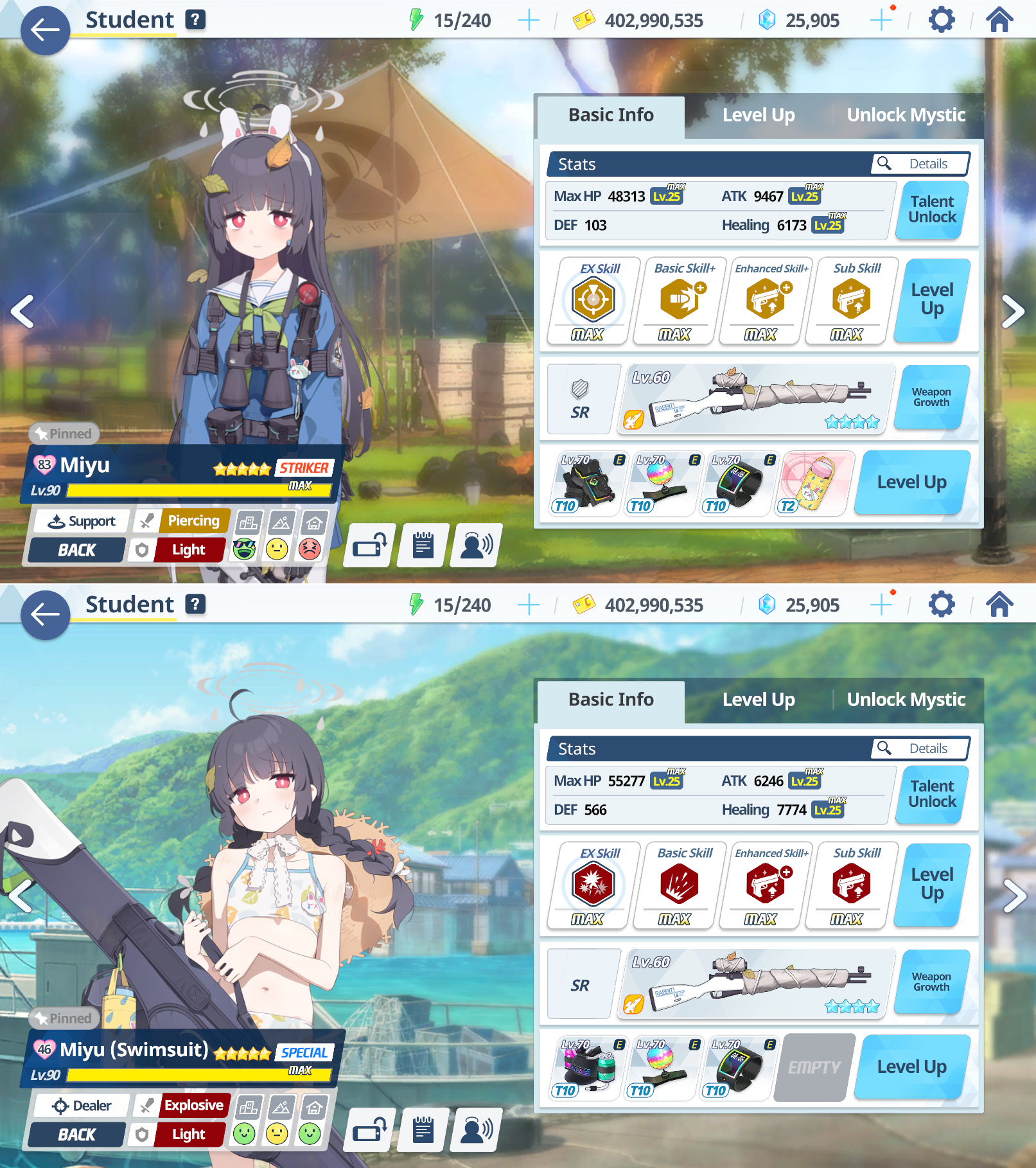 >>562208964contrary to what I thought I wasn't able to max their alts' limit break this month, I ran out of ooparts for mMoi. but on the bright side at least I was able to max all their skills from 5777. between that and all the students I had to build for Yesod, my credits stash got absolutely annihilatedsome good progress on the alts' bond level at least