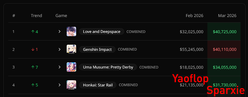 >>562221056>Game-I has better data for Hoyo than QimaiLmaoYou can also see the dissonance between game-I uma and sensortower uma