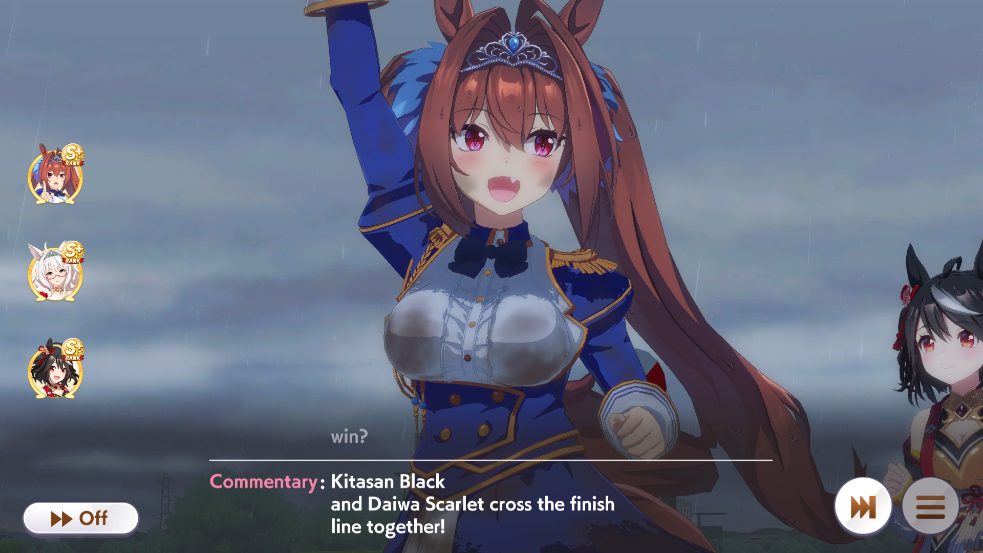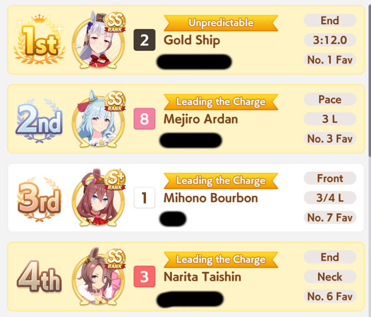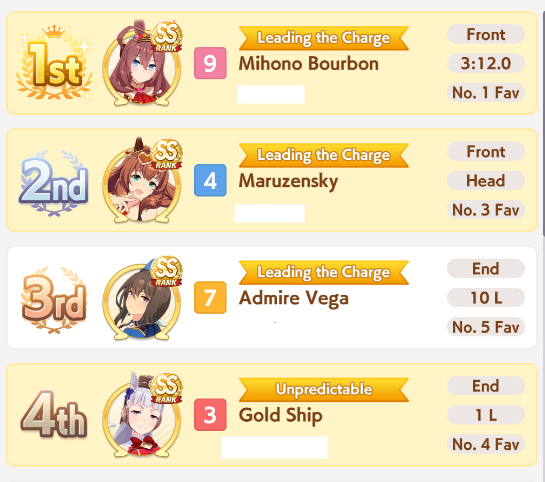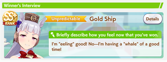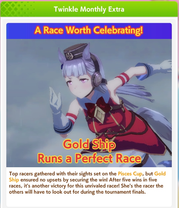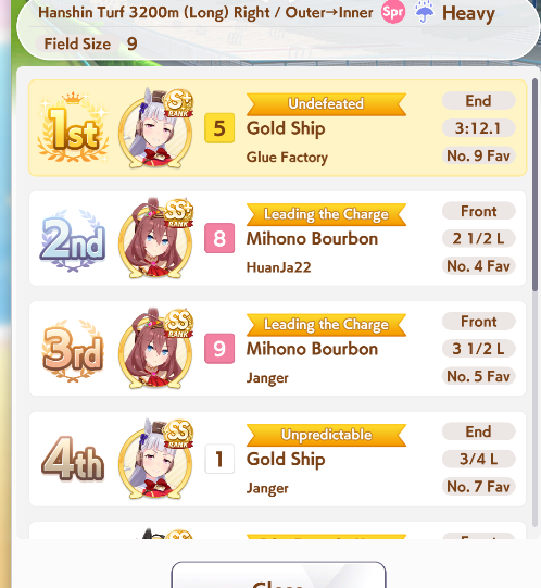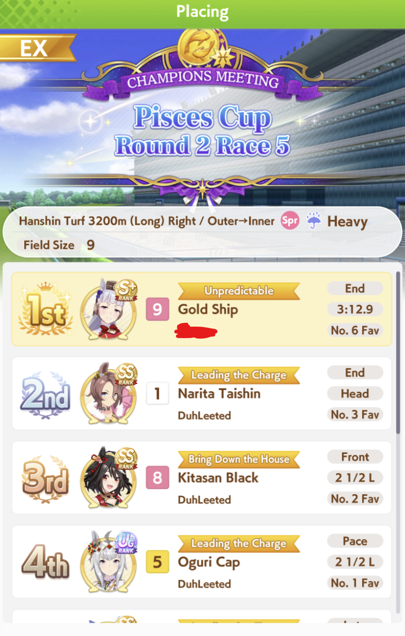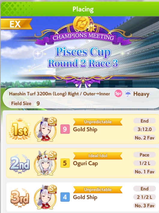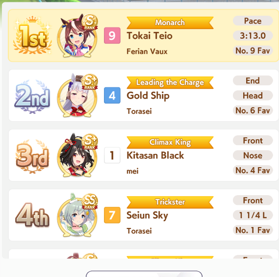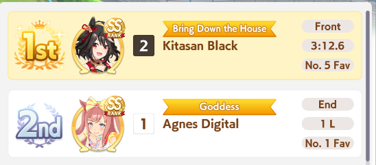 If you used goldship and Kitasan you didn’t win the game and will be raped by the next whale you race against