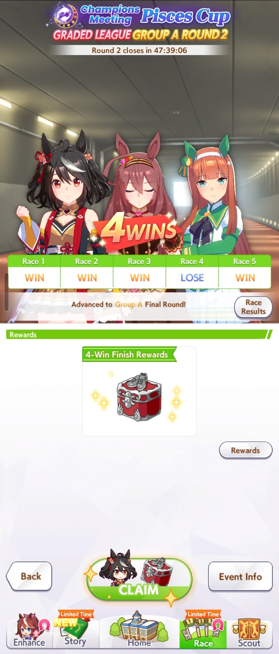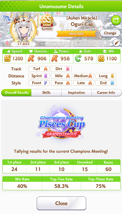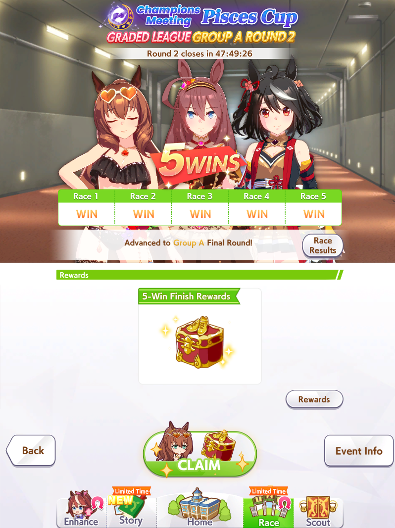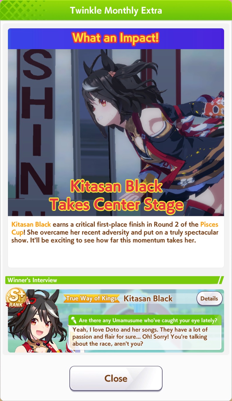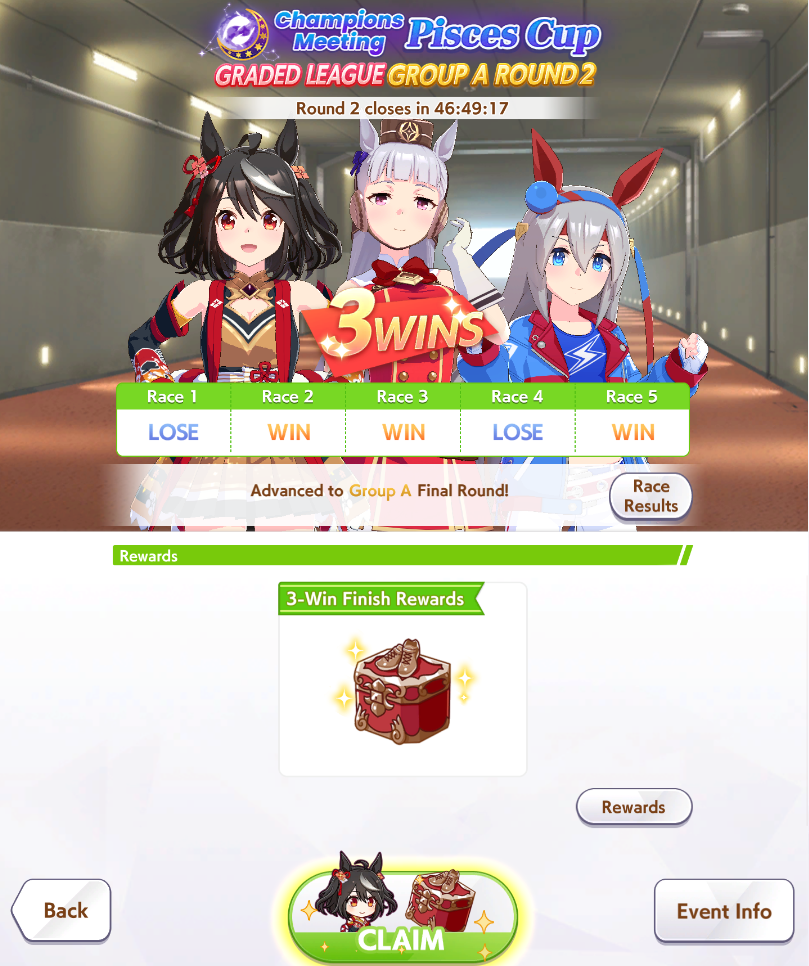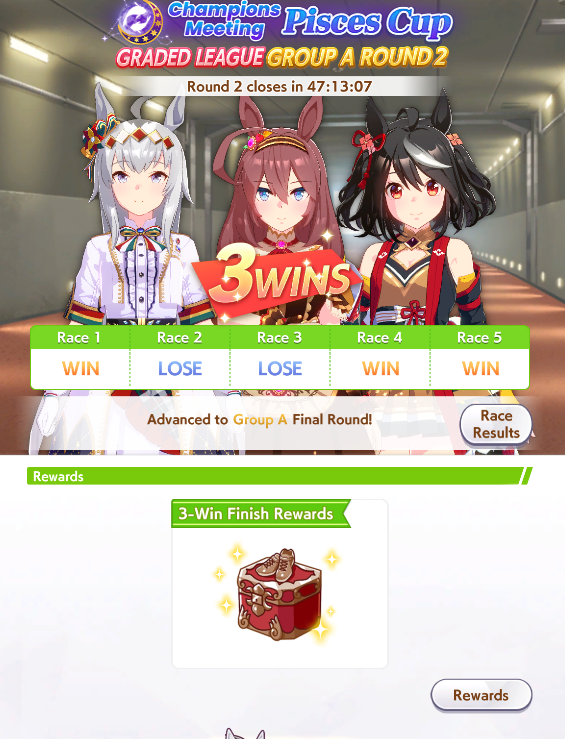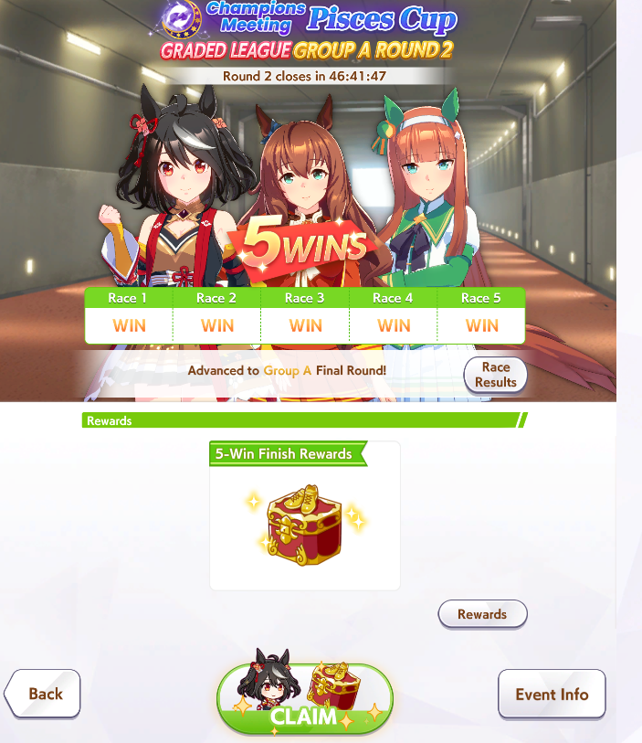 If you used goldship and Kitasan you didn’t win the game and will be raped by the next whale you race against