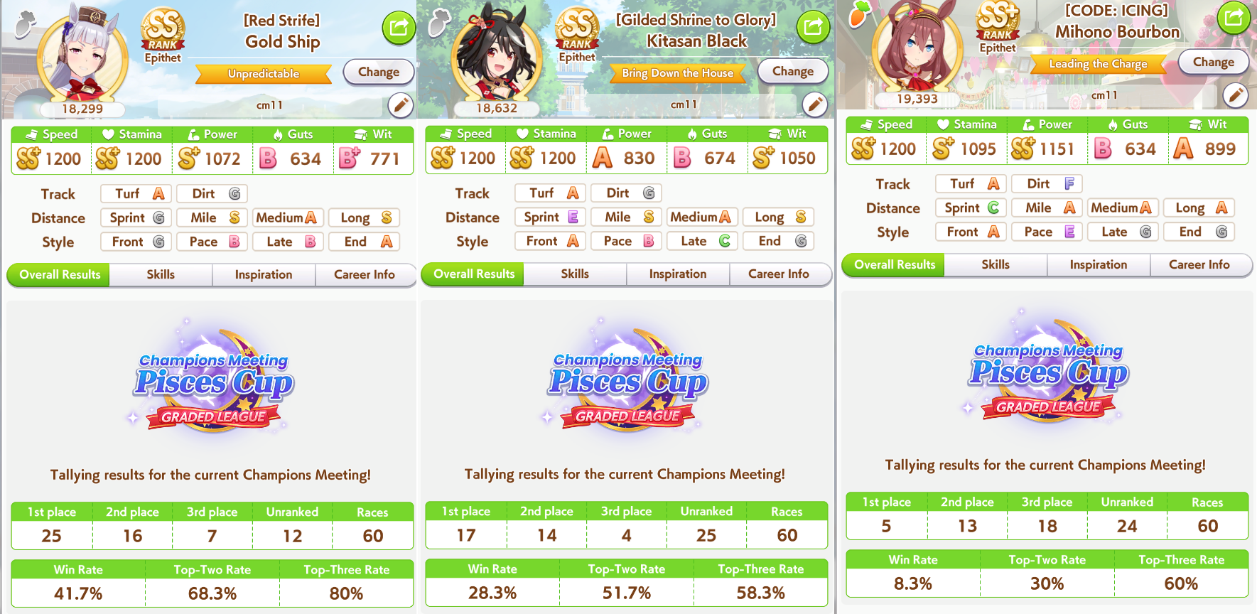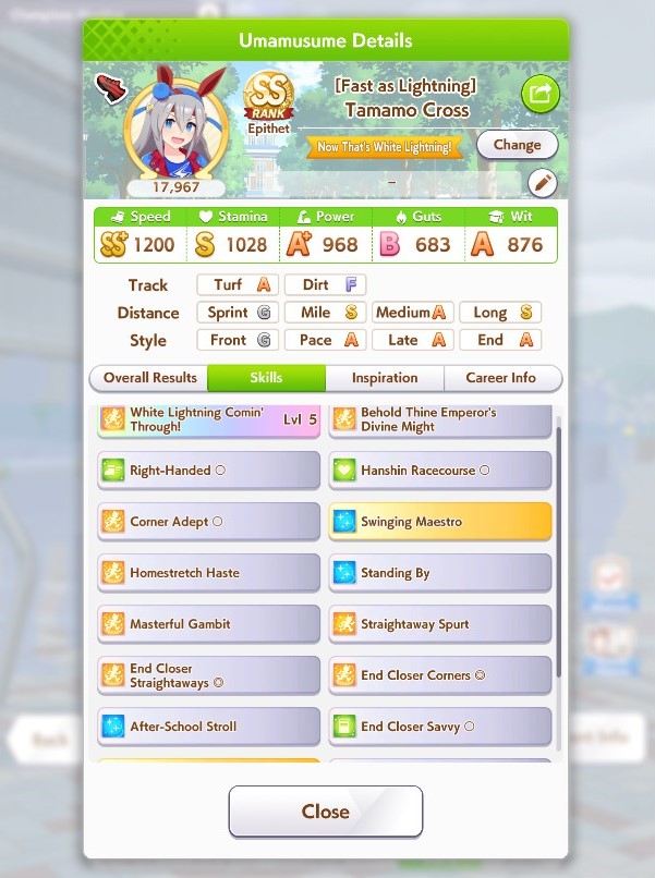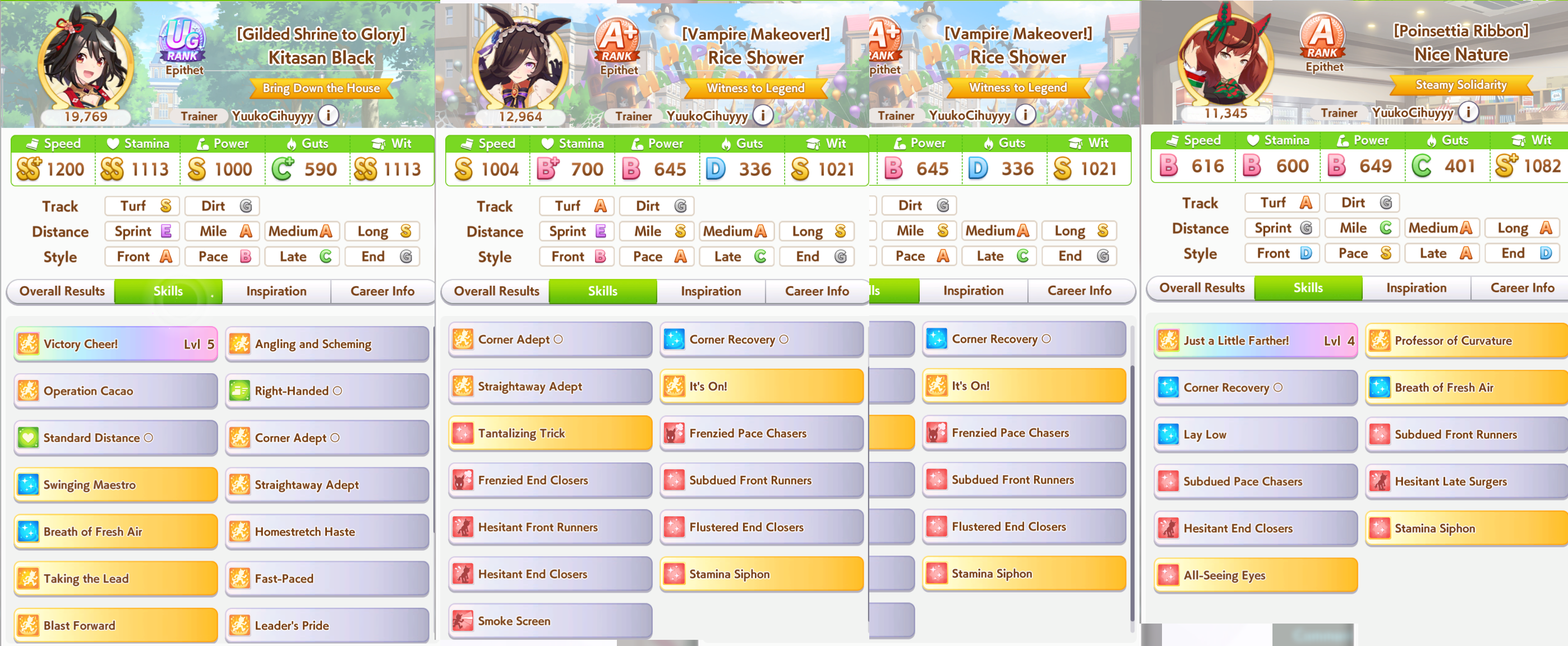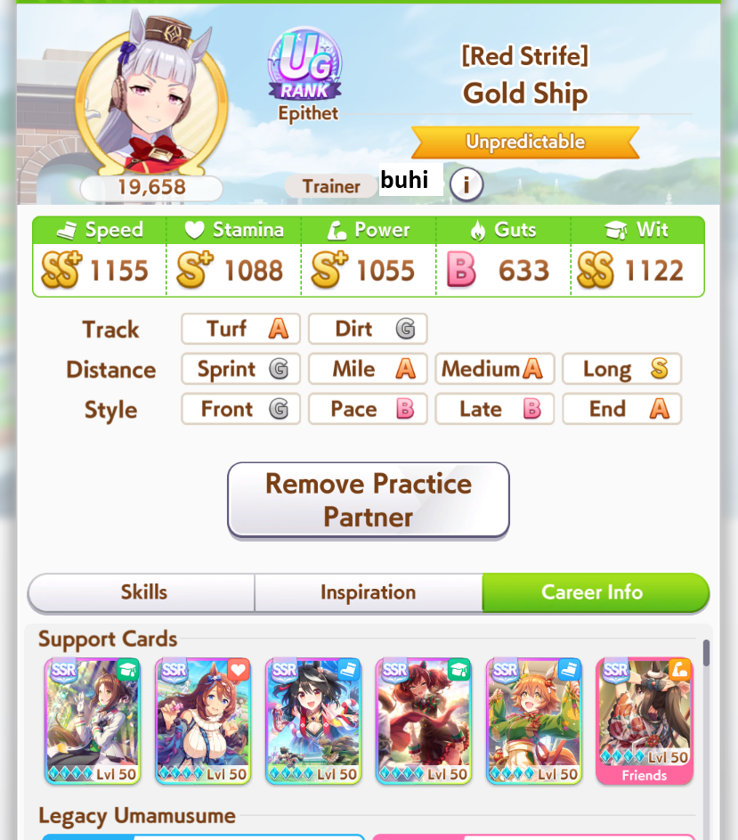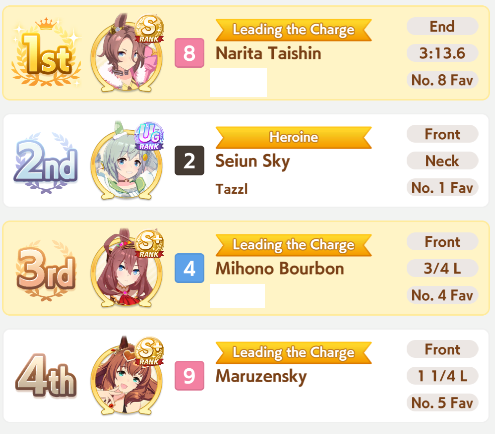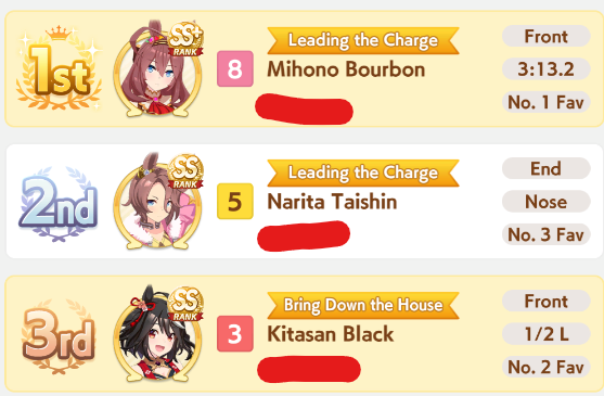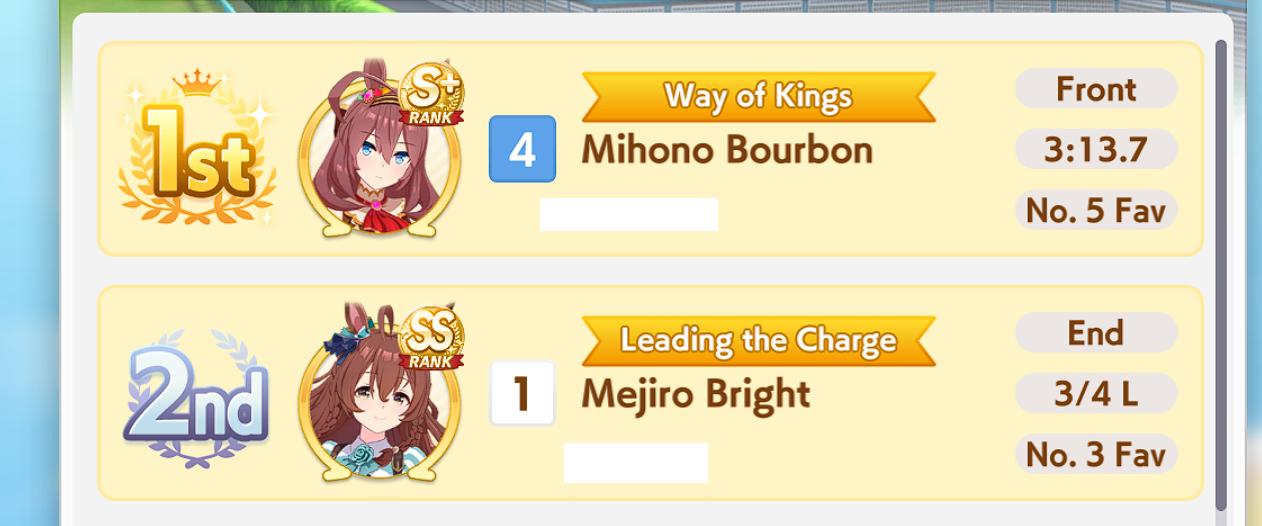 that Longs are just as much gamba as sprints, holy shit, some of the Bourbons that won vs my Kitasan were unreal, 900 stamina and three whites, 700 wit and no midrace to speak of, somehow got full spurt and raped my 1200 stam 1 gold Kitasan with plenty of midrace.