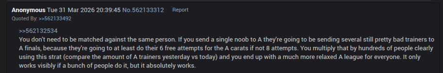The rapening wasn't as bad as I thought. I don't hold much hope I'll win A finals unless I'm matched vs a shitter who fails wit checks, but I'm satisfied with the performance, relatively speaking.
