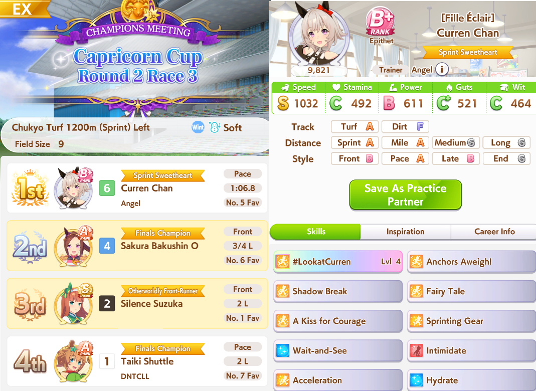 She must have just gotten insanely lucky on the wit overtake checks in mid-race. And somehow got full spurt anyway despite no gold recovery and 900 stam. If I tried that on Kitasan you bet your ass she'd gas out every time. Lucky little bitch......