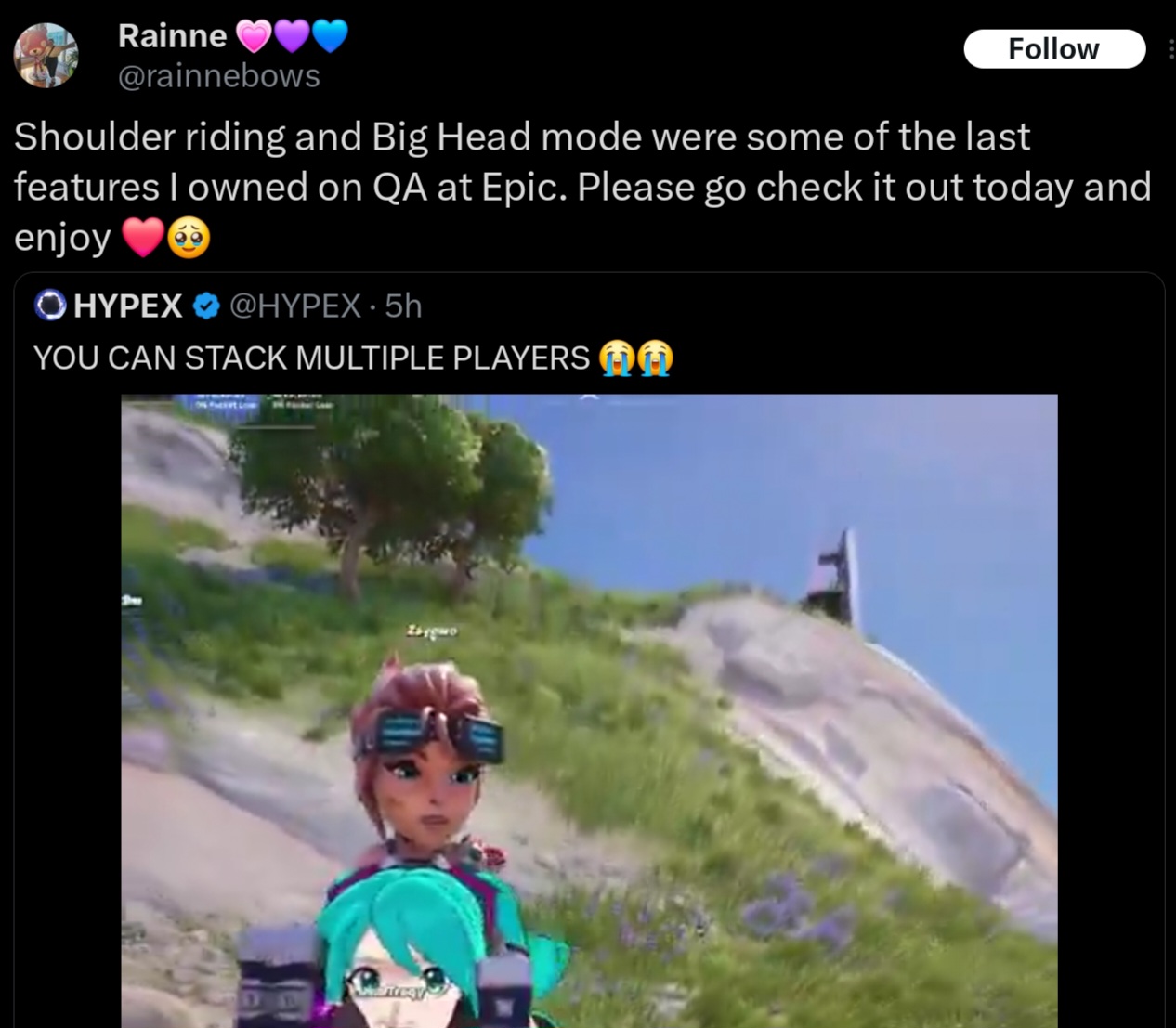>fixed the rewards to claim bug on free BP>instead it moved to the new og pass with rewards you can't claimYeah cool game epic. Now about those devs you fired...