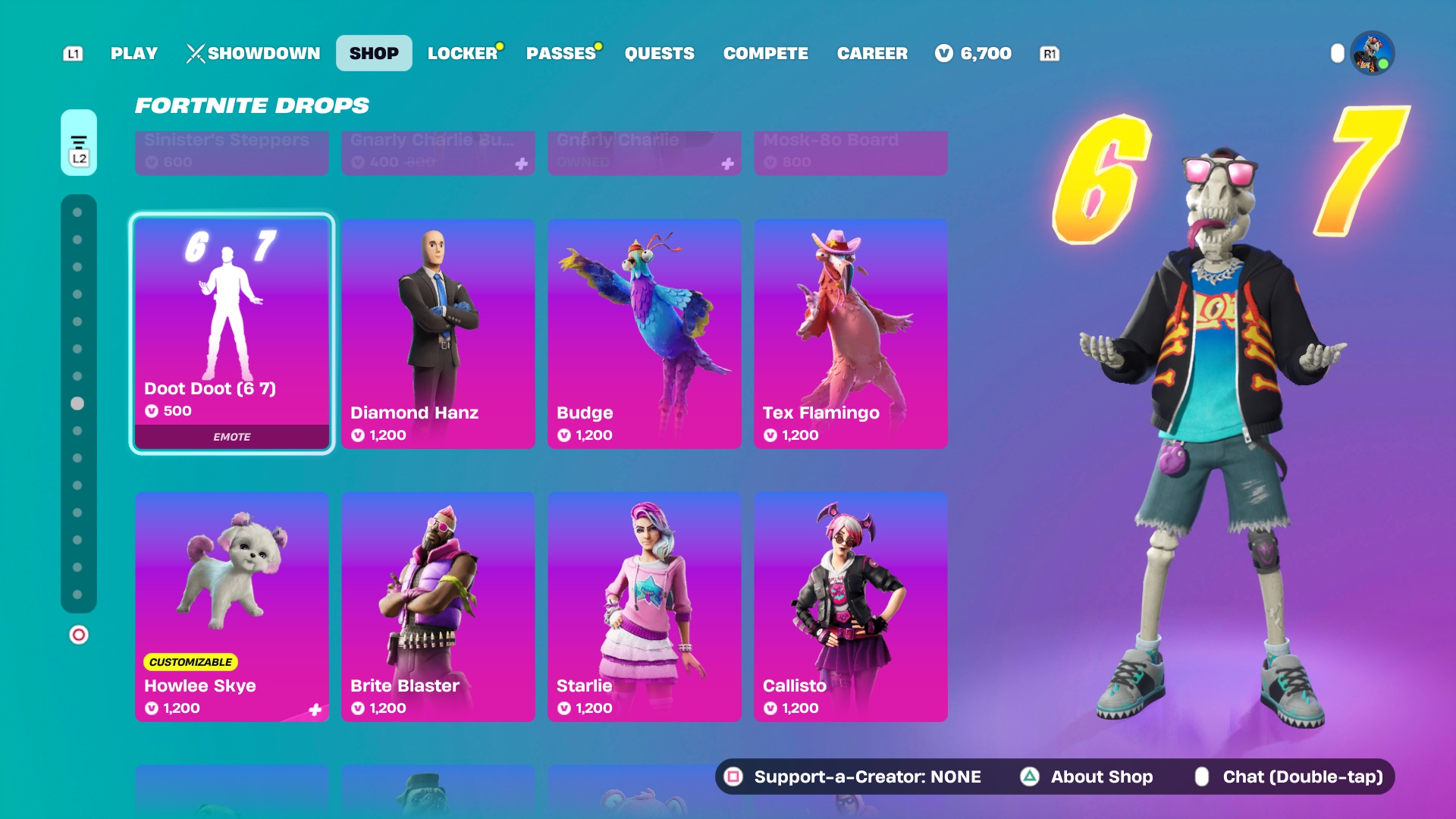 shop for tomorrow• Skibidi Toilet (1x)• Guardians of the Galaxy (3x) [LordGamoraWolverine]• Victory Vibes (2x)• Kai Cenat (3x) [KaiCenatBundle]• BMW (1x) [BMWm4]• CouRage (3x) [CourageJD]• Looney Tunes (3x)