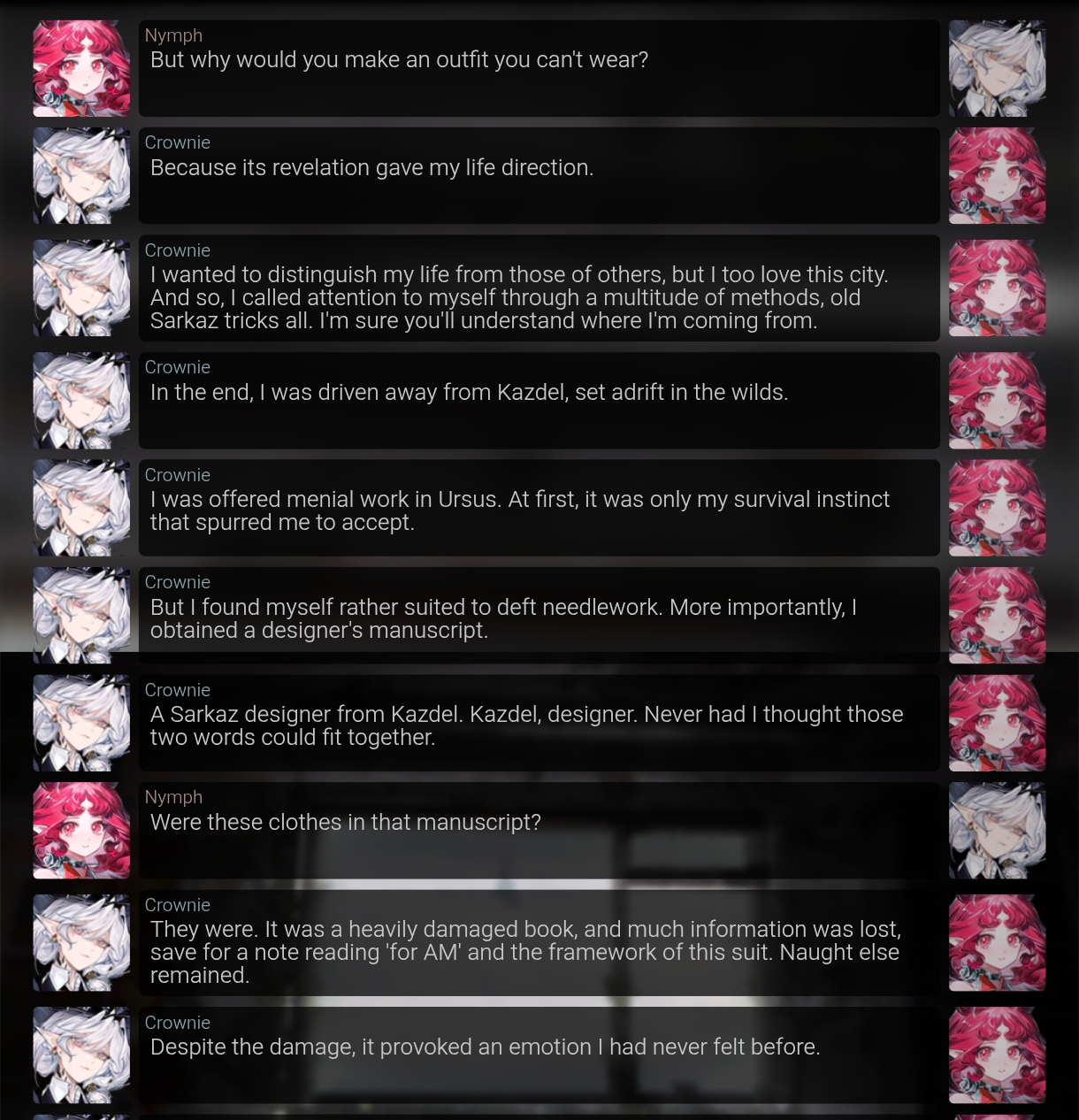 >>562281361Crownie is explicitly stated to be just a fan of the legendary designer whose notes she found in Ursus