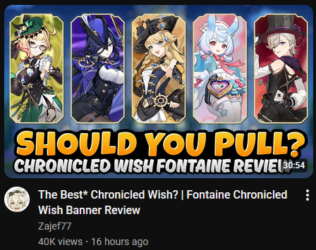 >>562292783>>562292845>>562292851>>562292971Think I'm gonna stick with Shenhe for now. Eula and Mona are both good calls, but I'll probably grab them later considering Sandrone and Alice will both take a while (or forever). I don't see them updating the pool before september at the earliest anyway.