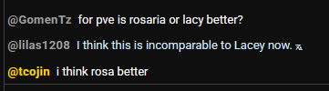 Bullet about to assassinate Rosaria on his tier list lol