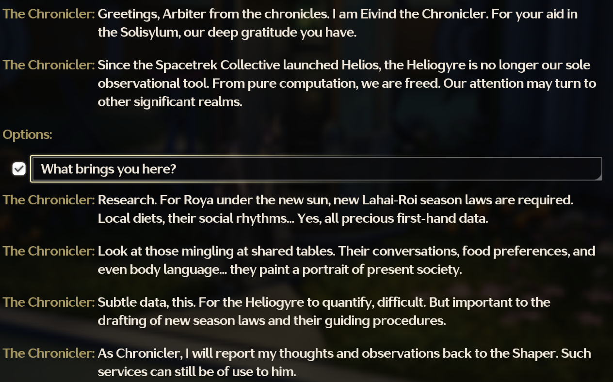 >>562289956Well I think the world-building is kind of cool, which is why I am actively going out of my way to search for lore titbits. The integration of the Royan culture into the main quest is not that good though, yeah. Putting them in Mornye's quest (disconnects with her own story) and Sigrika (franky a bland character) doesn't help.