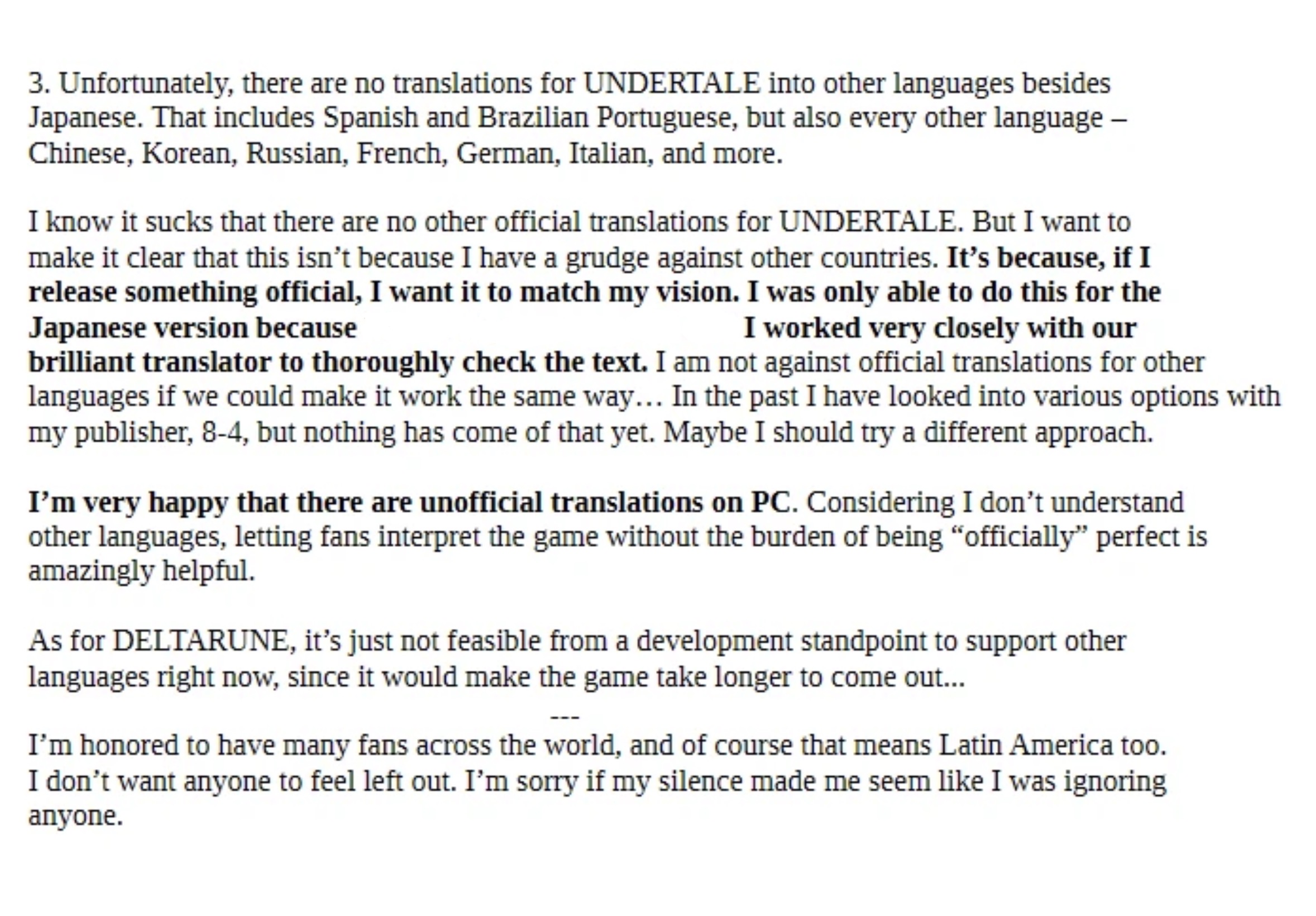 Claiming that he knew Japanese when Undertale was translated, downplaying the work of the actual translators and relying on people to fan translate his statement into Spanish which was then of course misrepresentative was such an unenforced own goal it's insaneIt's like he's never tried to calm down a race war before