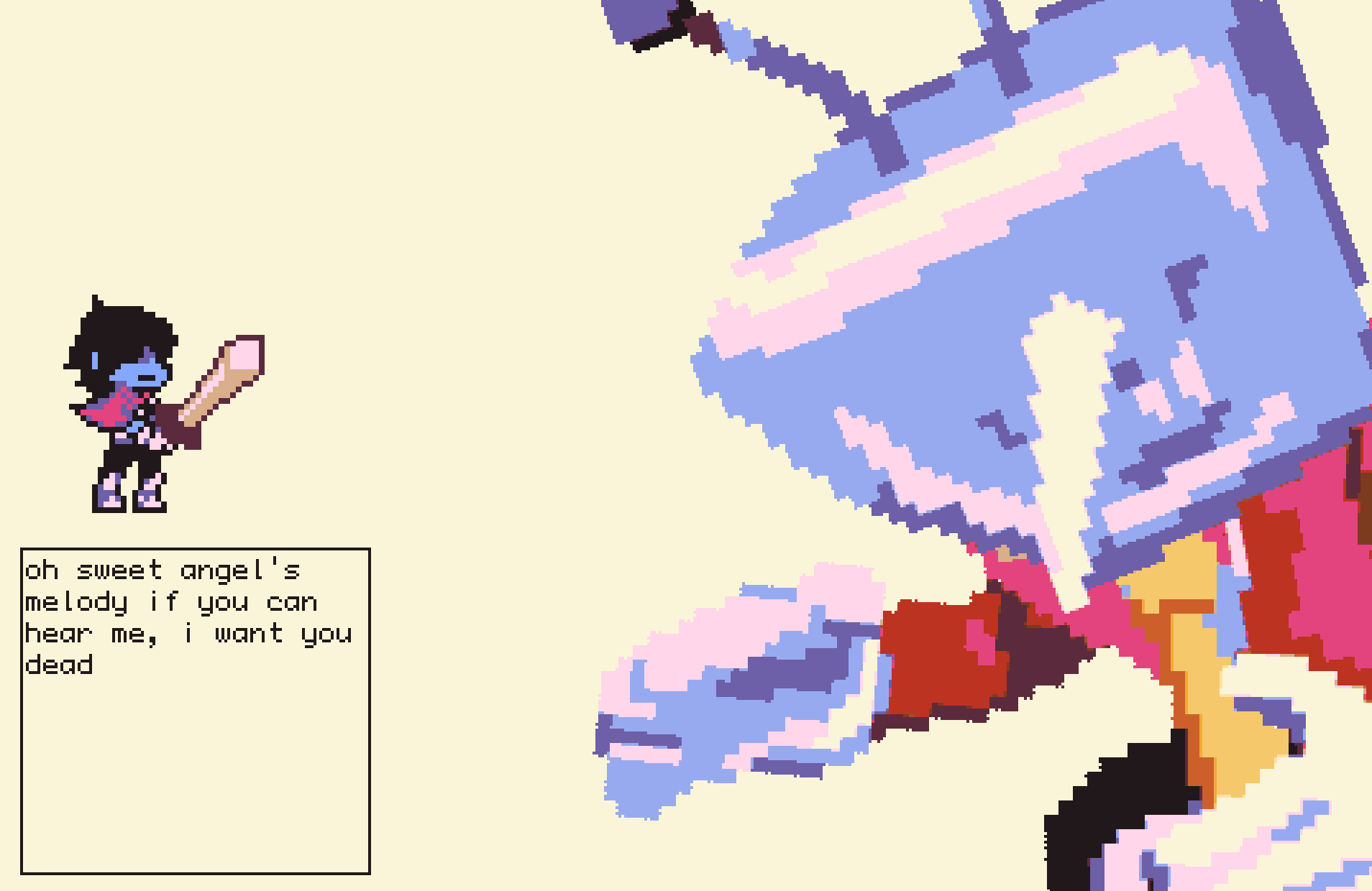 CHAOS! CHAOS! EDITIONPREVIOUS CHAOS: >>562255898SPOILERS AHEAD, PROCEED AT YOUR OWN FRISK.-THE NEW, NEW GAME!>https://store.steampowered.com/app/1671210/DELTARUNE/>https://deltarune.com-THE OLD, OLD GAME>https://undertale.com-The Old Game's Demo>https://undertale.com/demo-THE DOG'S STEADY STROLL BEGINS TO WAVER>https://toby.fangamer.com/newsletters/>https://deltarune.com/#news>https://web.archive.org/web/20240815033908/http://www.twitlonger.com/show/n_1sqn3p9-PURCHASE A CONFECTIONERY>https://www.fangamer.com/collections/undertale>https://www.fangamer.com/collections/deltarune-MORE FOR ME, ME!>https://undertaleqa.tumblr.com>https://undertale.com/alarmclock>https://deltarune.com/sweepstakes/-THEY WATCH, WATCH YOU! CAN'T YOU HEAR THEM LISTENING?>https://pastebin.com/WG9u1fvH-THE PAST IS A DISTANT PLACE. LET THESE WORDS GUIDE YOU AND YOU MAY CATCH A GLIMPSE>https://pastebin.com/g2JqH6Ba>https://utg.vidya.pics/-TAKE AN EAR, FOR WE HAVE MUCH TO SHARE>https://pastebin.com/fsqd5Sa6-THE WRITING PAGES>Current: https://docs.google.com/document/d/1ZaYVvltQ_Rmf-ggszf1bwmYDW2NUcfpTYU7JzfyMhVE>Old: https://writebin.surge.sh-THE WATCHING PAGES>https://pastebin.com/UJpBYSEE-GAMES, GAMES!>https://archive.is/iSiFg-IT'S RIGGED I TELL YOU! RIGGED!>https://implyingrigged.info/wiki//utg/-EMBRACE CHAOS>https://rentry.org/utg-font-THE MADMAN PAINTS HIS FACES>Current: https://r8.whiteboardfox.com/87031452-9445-6936>Previous: https://r8.whiteboardfox.com/87014223-3106-4870>Current: https://magma.com/d/3B5chWd0Vh>Previous: https://magma.com/d/QiFH9rWyRh-AN ABANDONED BOX OF TOYS. OH, IT REMINDS ME SOMETHING OF MYSELF>https://utg-pippins-ocs.neocities.org-CONTINUE THE CRIME SPREE! UEE HEE HEE! (paste the current whiteboard links)>https://pastebin.com/rTN8SxAw