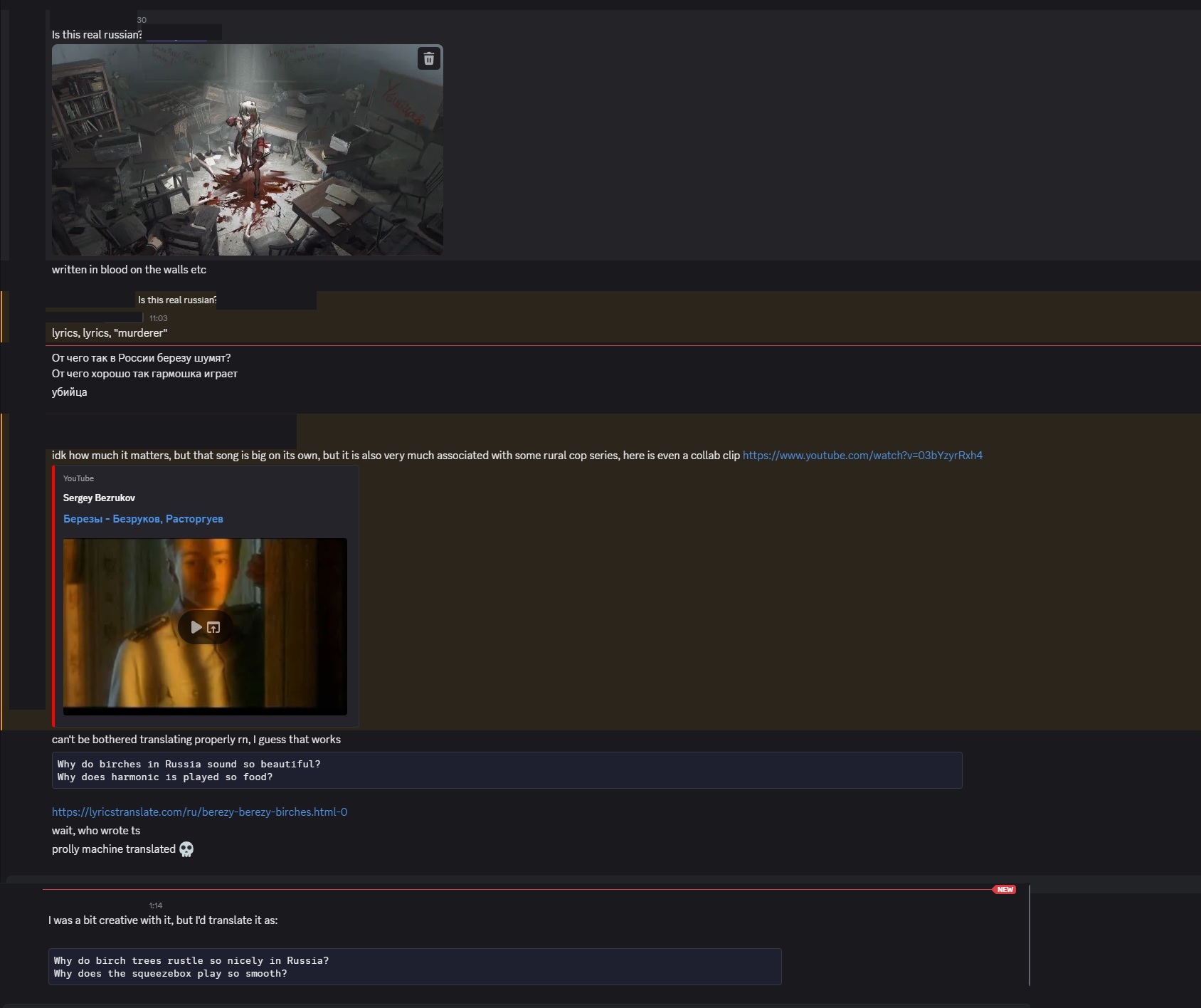 >>562306102>had to find the song>https://www.youtube.com/watch?v=03bYzyrRxh4Oh, that song. Not sure where I know it from, great thoughIt's always interesting to me how much uh... soul? Russia has in music and art and whatnot. I know that sounds stupid but it's hard to phrase it better.It's not what I expect to be underneath all the things I see on the surface or something.