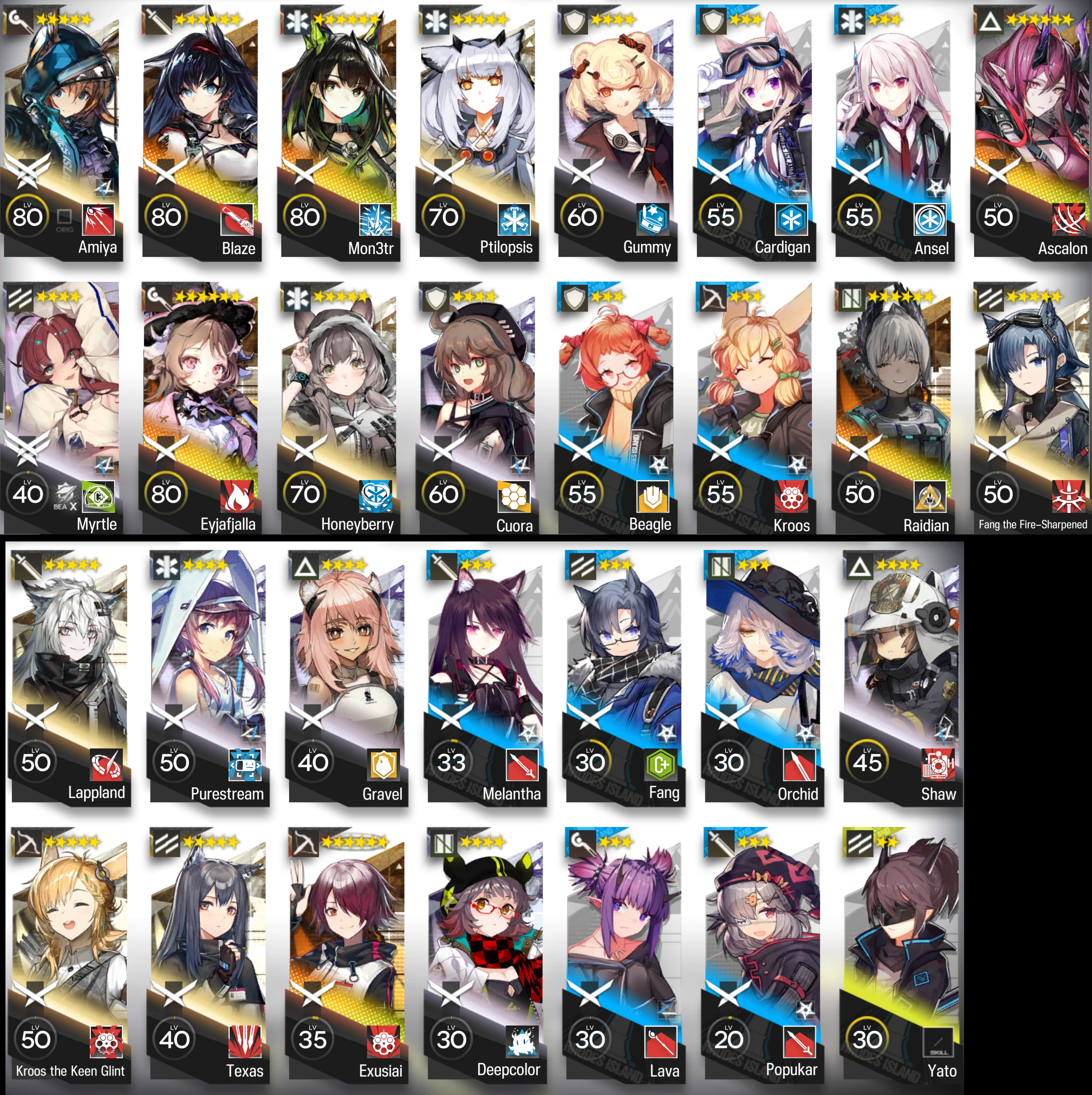 >>562309896Well one is Pramanix's alt, and she's a Phalanx caster. By default they're interesting in that they can serve as ranged tile tanks, as they are extremely resistant to damage while their skill is off (but also they don't attack normally)What I personally want her for is that she drops snow all over the battlefield in her attack range, and it inflicts cold and does damage when enemies pass through it. Neat setup op. She has an infinite skill that allows her snow to continue spilling out beyond her range too.Some people say she's boring, due to the combination of an AFK skill and apparently doing quite a bit of damage. I really like the snow thing though.SilverAsh is a Strategist, a mostly new kind of new vanguard that is pretty interesting. His kit is also wild and I'm not sure I could explain all of why. Strategists generate DP while also buffing or reducing the DP cost of other operators, so pretty neat.He has a skill that can swap the DP costs of your lowest and most expensive ops. So you can deploy a 30 DP op for 3 or something crazy. He can also remove invisibility, inflict cold/fragile, grant barrier to deployed ops, have a stupidly large attack range, and do some wild shit with a deployable storm thingy that I don't understand.He seems like the kind of operator who can meaningfully open up new ways to play the game and solve stages in ways that only he currently can, while also being powerful. That's pretty big.