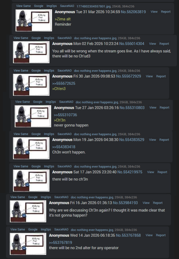 >>562288227Only characters that have multiple versions are chen and amiya, he’s definitely not joining them kek
