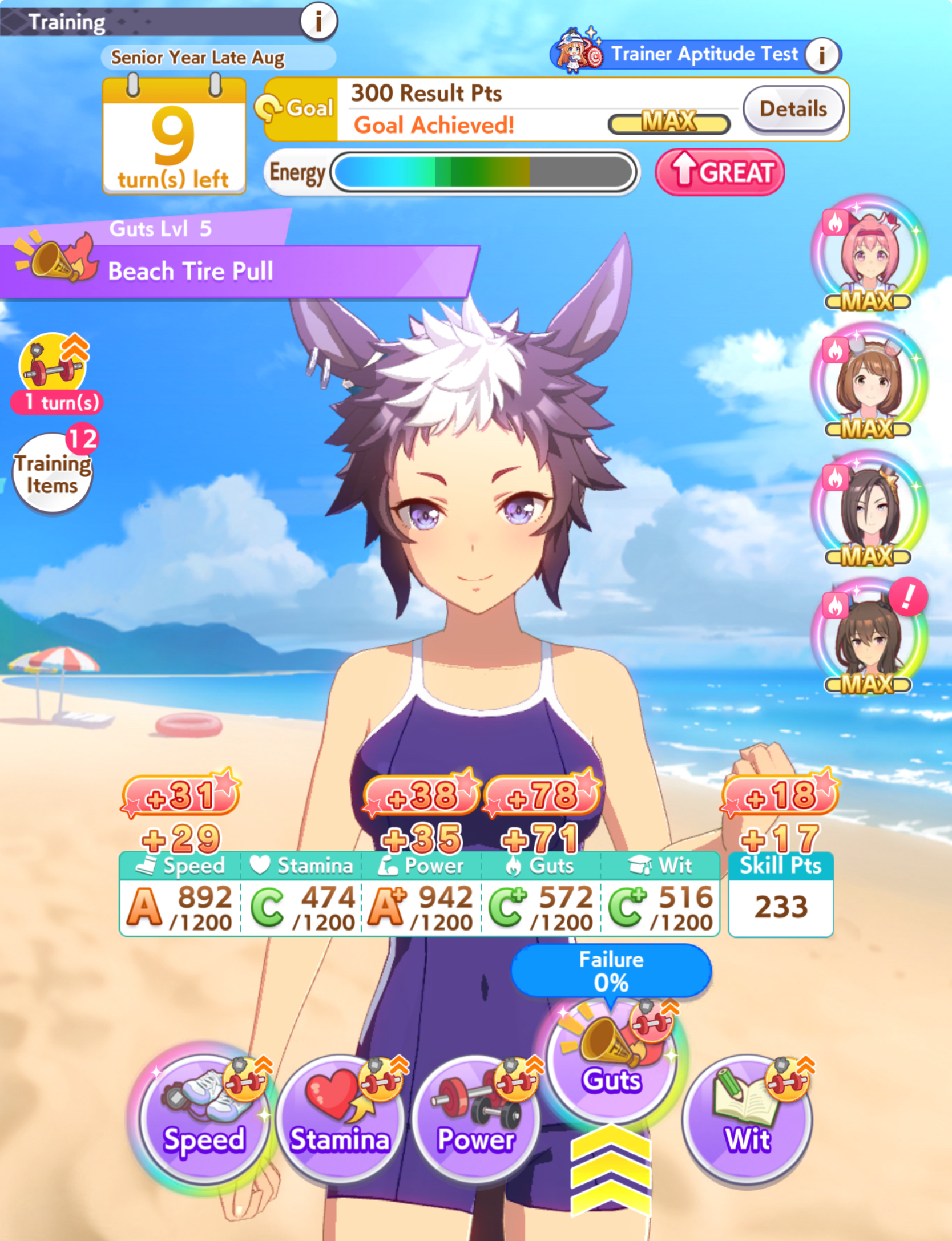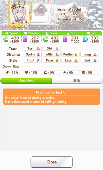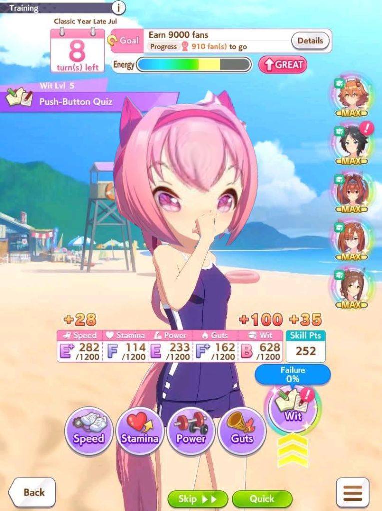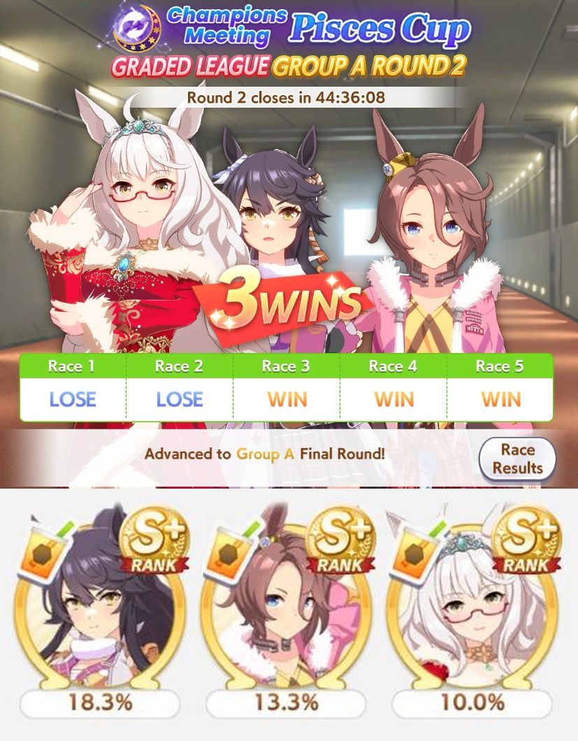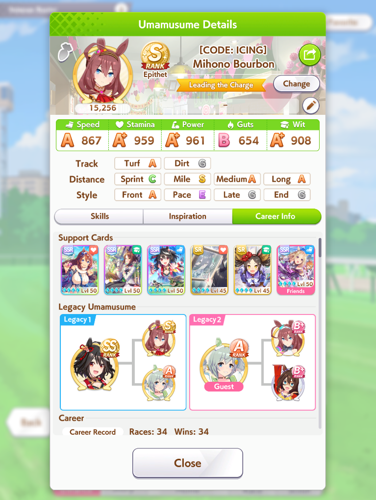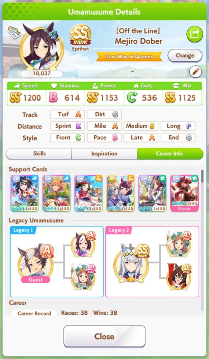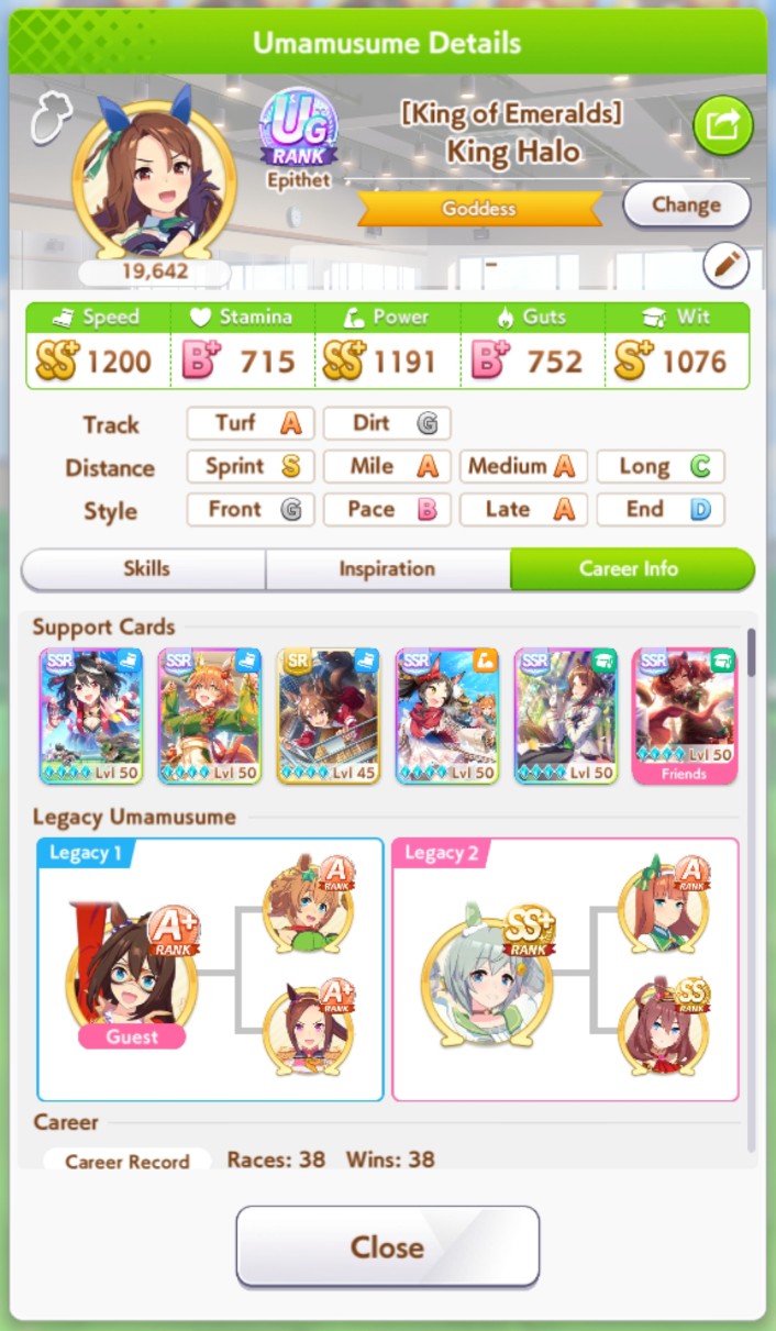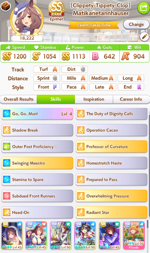>>562298892>>562298927>>562298927My parents suck so my Kitasan often suffers from either low stam or low strength so I haven't been able to get her to S rank, fell behind with the team sirius card and the rng wasn't good on both summer events, ended up with Kita having +B and C skills by the end of senior year. Somehow she still won the twinkle series.