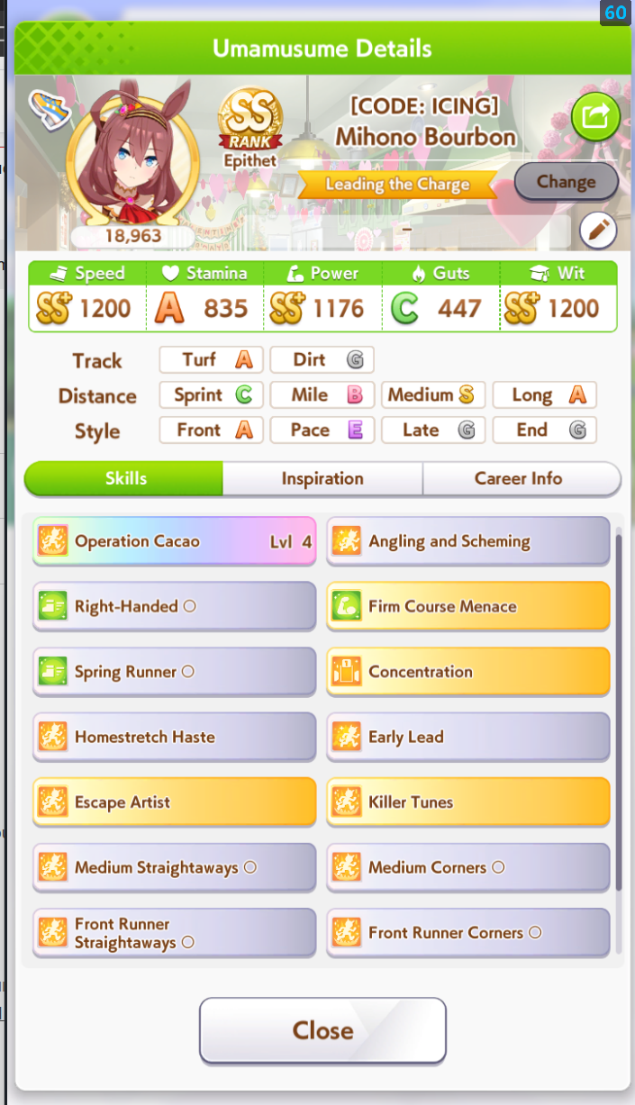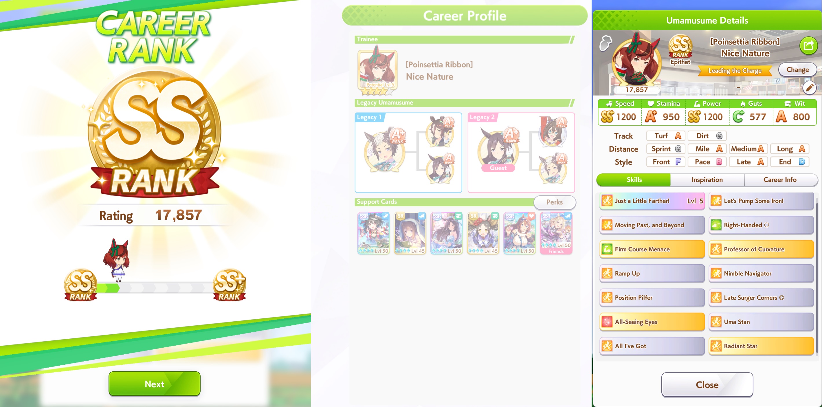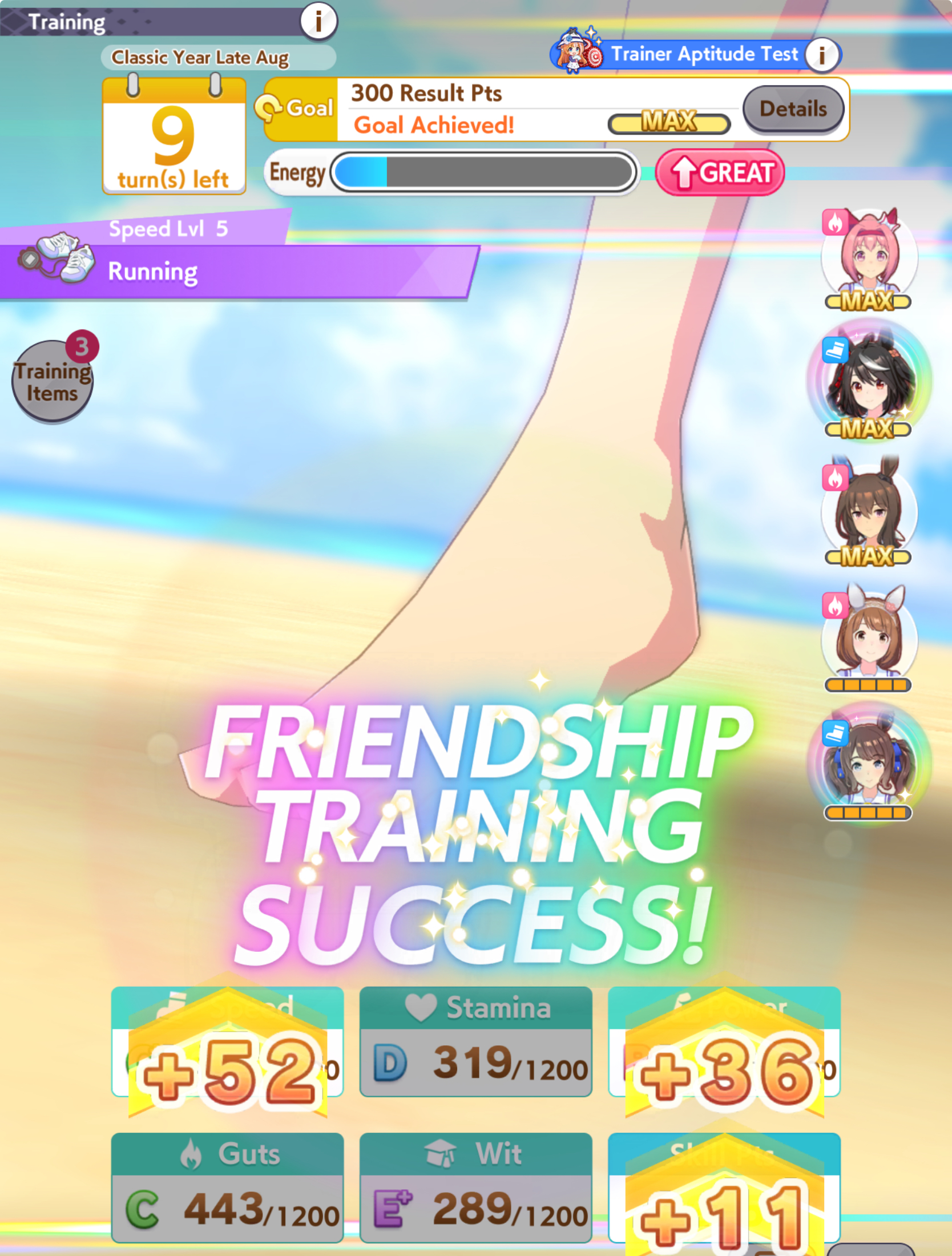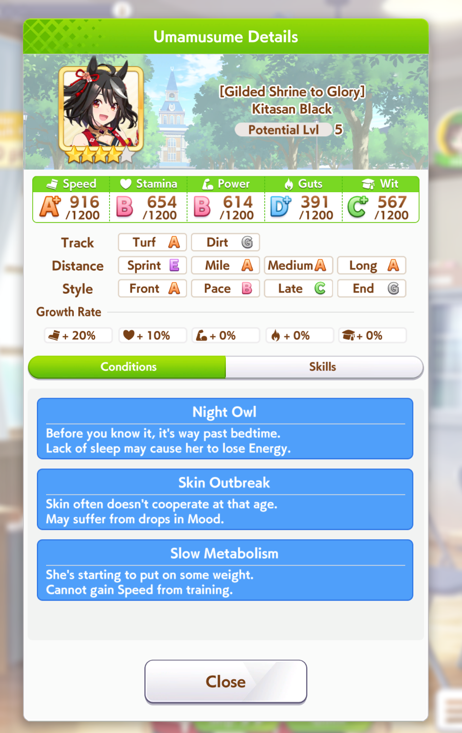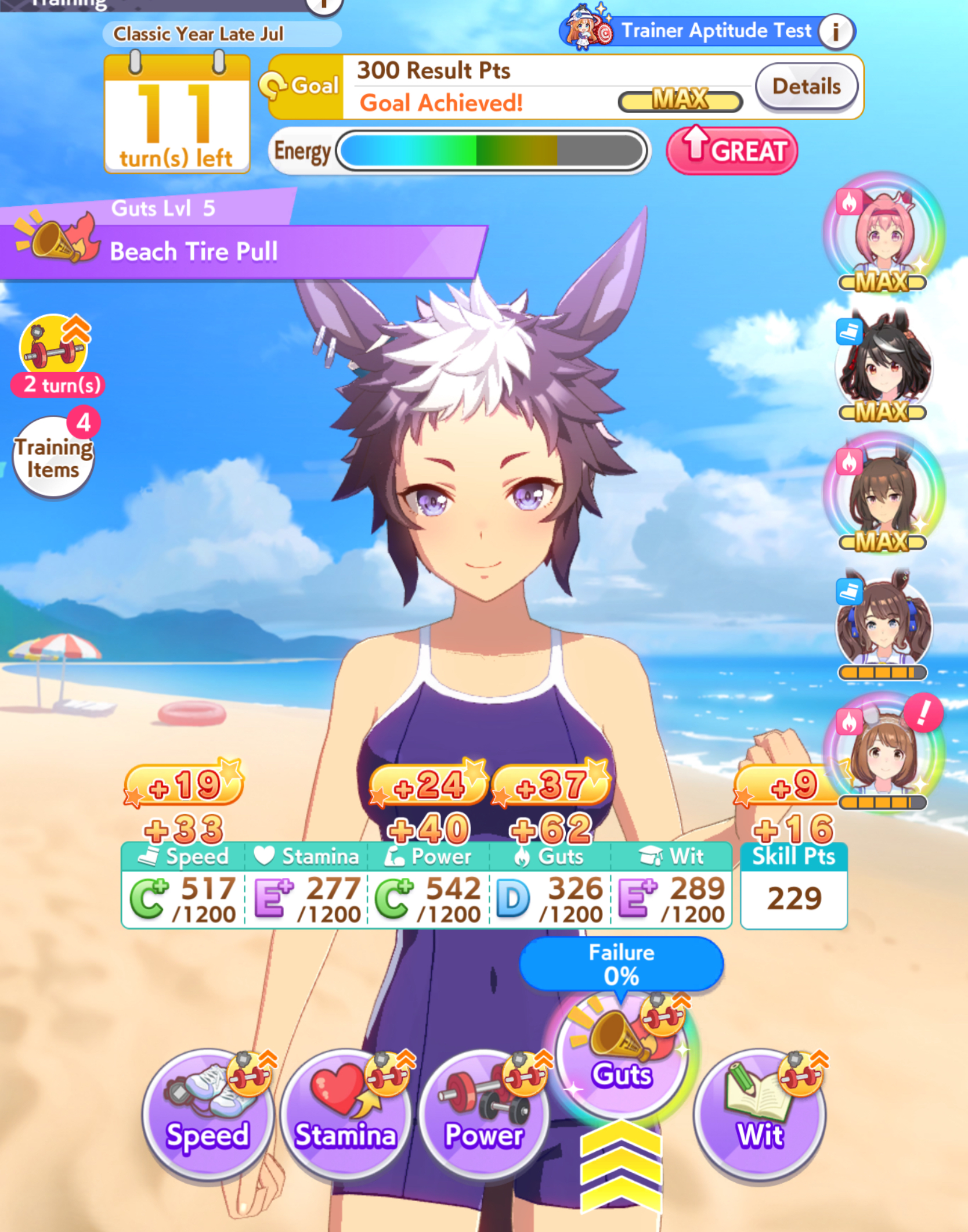 >>562298892>>562298927>>562298927My parents suck so my Kitasan often suffers from either low stam or low strength so I haven't been able to get her to S rank, fell behind with the team sirius card and the rng wasn't good on both summer events, ended up with Kita having +B and C skills by the end of senior year. Somehow she still won the twinkle series.