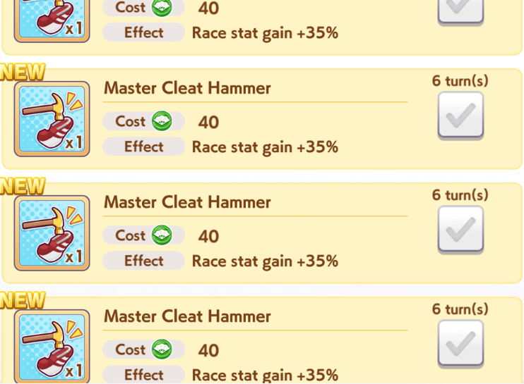 >>562297672run g2/g3 just like how you do it in URA parent runs. for shops just buy everything every 6 resets.