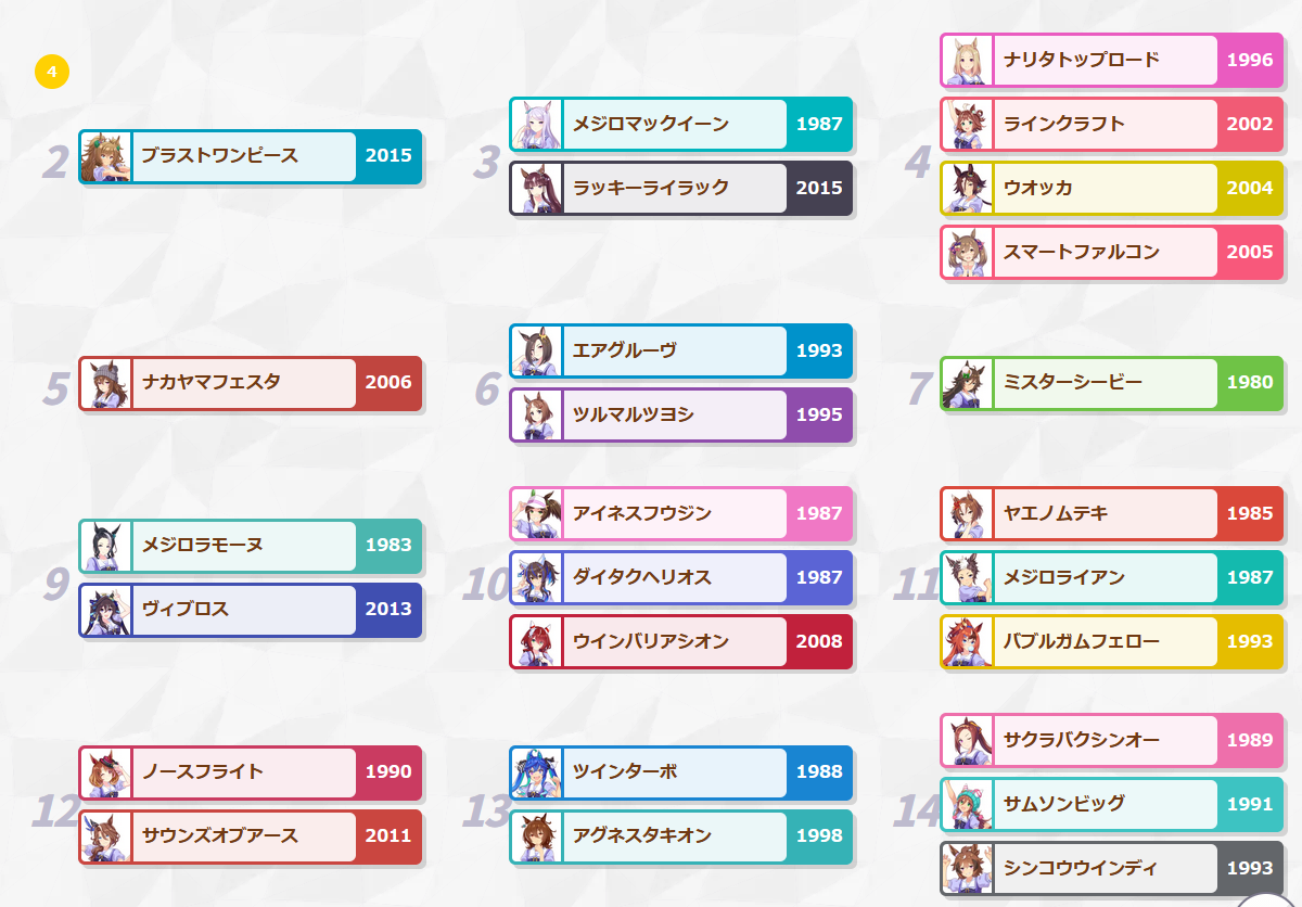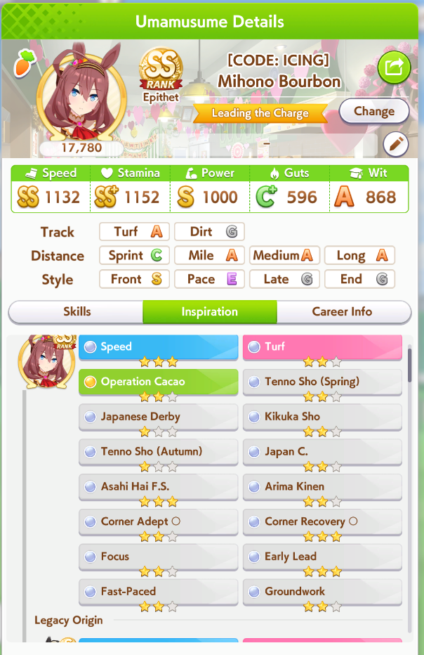 Previous: >>562283186>Global Game NewsLink your account to Cygames iDMain Story Act 1, Finale Part 1 now AvailableCurrent Scenario: Make A New Track aka "Trackblazer"Current Rate Up Trainee: Satono Diamond (3*), Mejiro Bright (3*)Current Rate Up Support Cards: SSR Zenno Rob Roy (Speed), SSR Curren Chan (Wit), SSR Marvelous Sunday (Guts), SR Curren Chan (Speed)Current CM: Pisces Cup - Hanshin Turf 3200m>Schedule03/02 - 04/14 - Halved TP Cost & 2x Career Mode Rewards04/05 - Ballroom Seiun Sky (3*), Ballroom Fuji Kiseki (3*), Symboli Rudolf (SSR), Sirius Symboli (SSR)04/05 - Ligne Droite Story Event04/12 - Nishino Flower (3*), Daiwa Scarlet (SSR), Sweepy (SR)04/20 - Yaeno Muteki (3*), Ines Fujin (SSR), Twin Turbo (SSR)04/20 - Aries Cup - Medium/Right/Spring/Firm/200004/26 - Golshi Week Celebration04/26 - Cheerleader Nice Nature (3*), Cheerleader King Halo (3*), Bamboo Memory (SSR), Seeking the Pearl (SSR)04/26 - Tracen Cheer Squad Story Event04/30 - Ines Fujin (3*), MR. C.B. (SSR), Tokai Teio (SR)https://pages.snep.pw/uma/anni-skill-changes>JP Game NewsCurrent Rate Up: Sakura Bakushin O (3* alt), North Flight (3* alt), SSR Daring Tact, SSR Daring HeartNew Scenario "Beyond Dreams" releasedTimeline: https://uma.moe/timelineCygames Webstore: https://webstore.cygames.com/en/umamusume_en>Thread Clubshttps://rentry.co/umaglobalclublistYou must be E3 (20k points) to join a circle. Apply with /uma/ or /vg/ in your profile or post ID in the thread.>All Guides & Resourceshttps://rentry.org/uma26Game databasehttps://gametora.com/umamusume (Click the gear to switch between JP / global server info)A basic guide for newfagshttps://rentry.org/umaglobalFind networks if your region is blocked from the game or clienthttps://www.umavpn.topSeiyuu & Concertshttps://rentry.org/umstUmamusume Birthday Calendarhttps://ウマ娘.攻略.tools/events/birthdayUma Texthttps://umareader.idsmile.xyzCustom Stickershttps://schizo.farm/resources/stickers