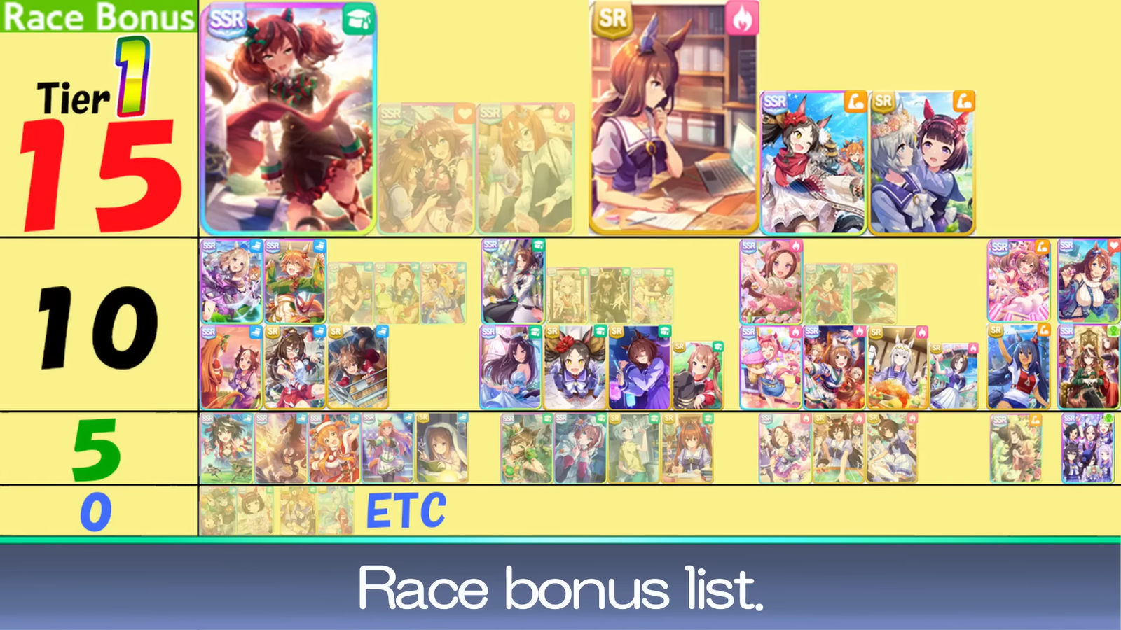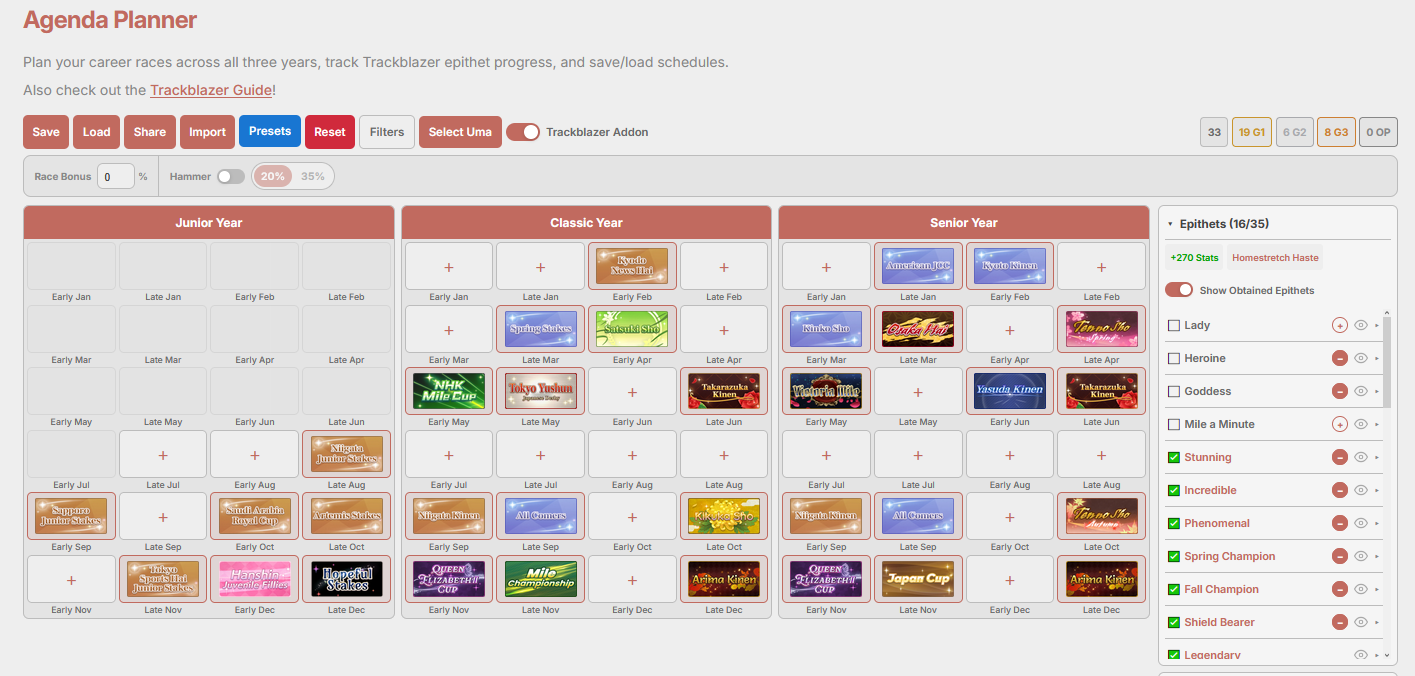 >>562312898I dedicate the whole of junior year to grinding friendships and only doing two races to clear the goal (one g3 and hopeless stakes). Then I just add whatever medium and long race I can put on the schedule as long as its a g3 and above race. >If training badrace>If training good and not a g1 racetrain>Very low to no energy rest unless its a g1 and you have an energy refill on hand since you can trigger race fatigue if you race with zero energy Take my advice with a grain of salt I'm just another third rate torena