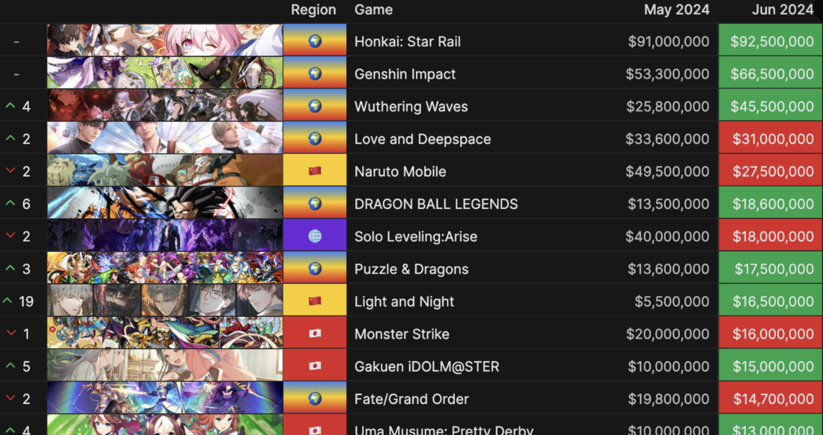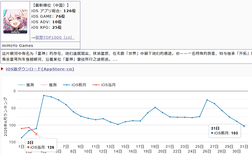 >>562315745iOS estimates for JP only. But if you look at the app ranking for all other countries it's not that different. HSR sank below top 50 in 2 days in CN, below top 100 in 5. Right now it's below even HI3 in CN. Meanwhile Sparxie's banner never dropped below top 100.