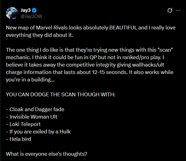 >win a team fight>they respawn and come back out, except for two of them apparently>strange is still back at their spawn with wanda>he's opening a portal>there's no audible voice line or sound to indicate it>wanda starts charging her ult in her own spawn>there's no audible voice line or sound to indicate it>literally in the exact tenth of a second the portal gets opened wanda comes out and obliterates usthis shouldn't be allowed