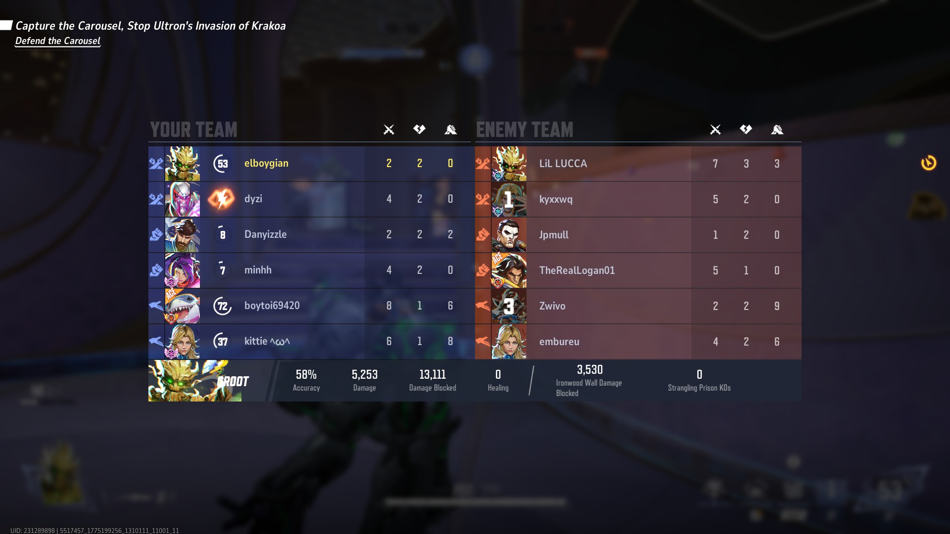 >qp>barely win a game by the skin on my teeth>see stars>have 17 final hits>groot has 4 final hits(he also stayed on the objective so I cut him slack)>everyone else has 2 final hitsO.M.G