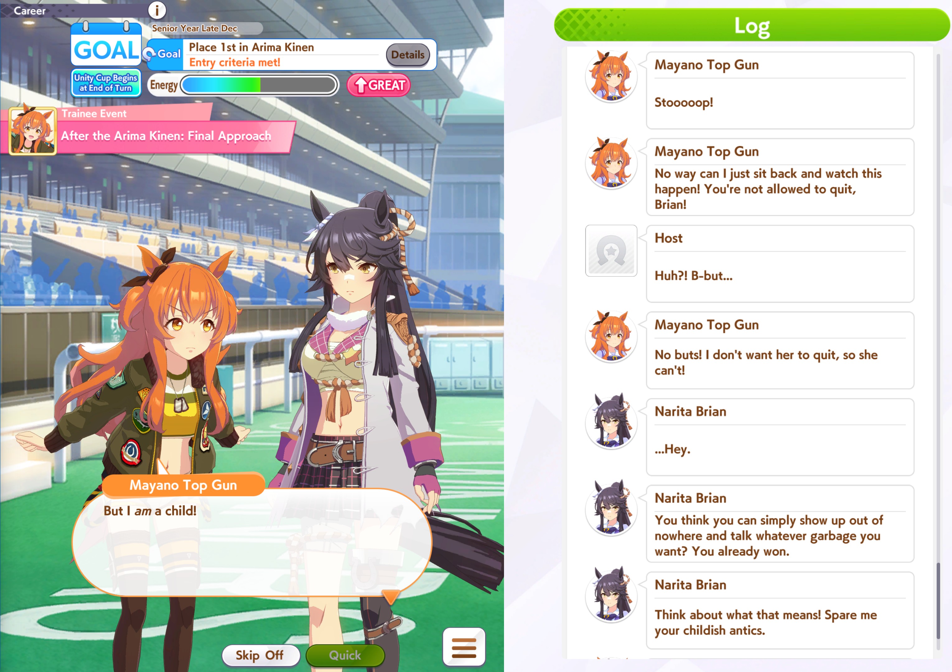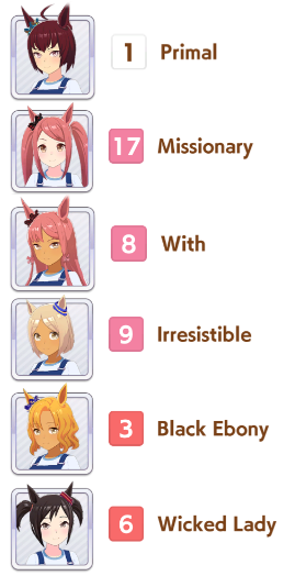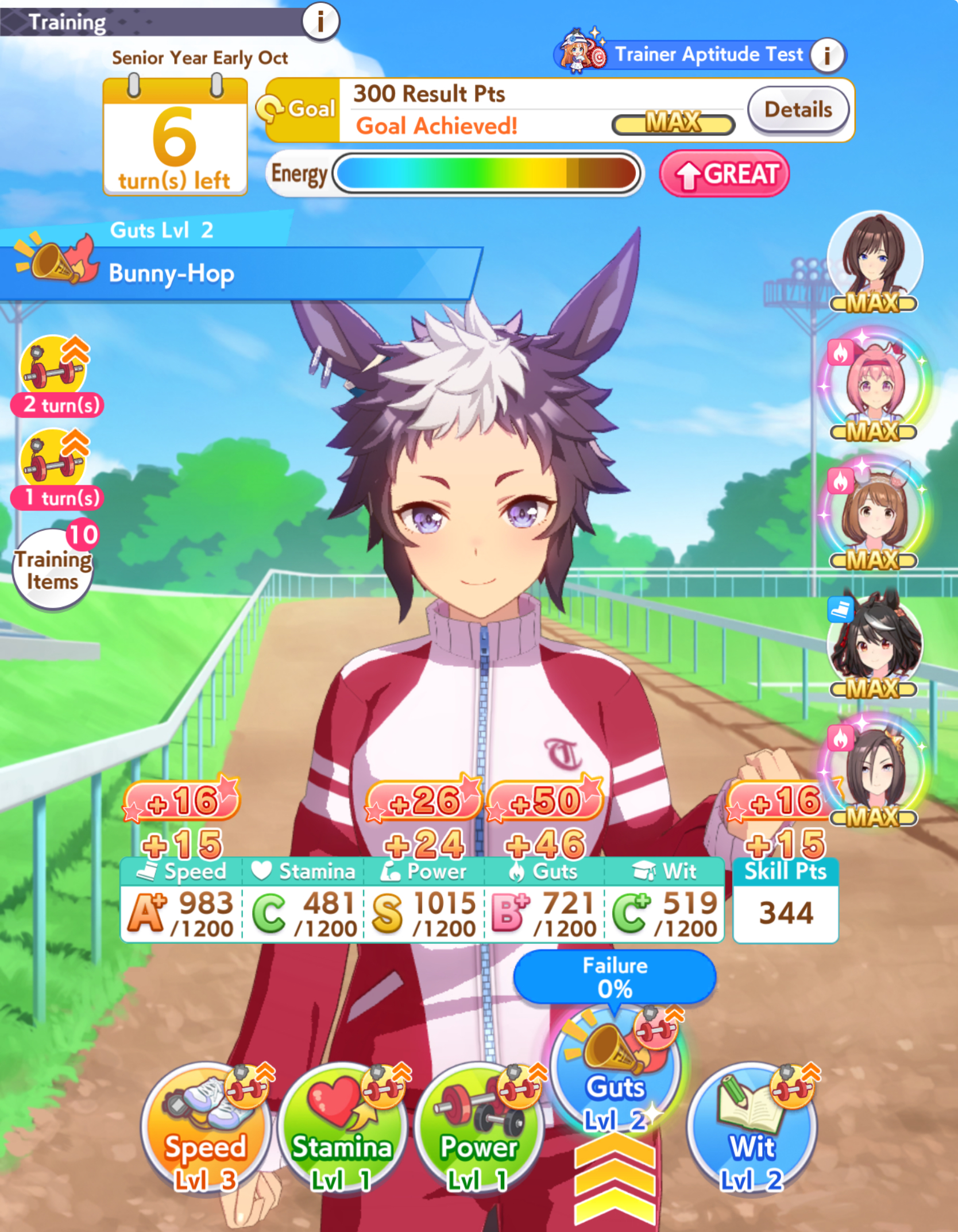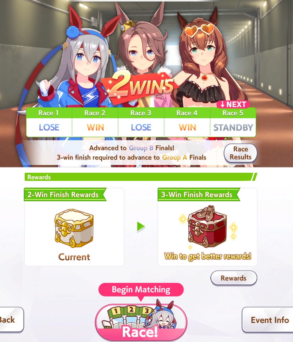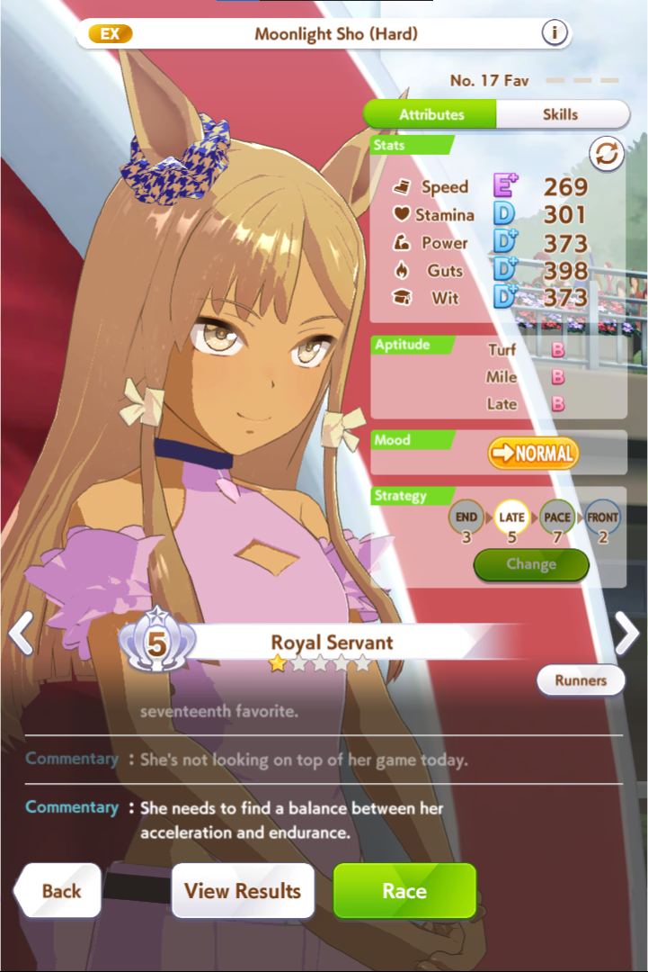 aghhh c'mon, give tam great mood for once. I swear to umagod she has gotten BAD 70% of all races. Including these 4. My taishin can't win shit ever. S.m carrying me to A.. plz