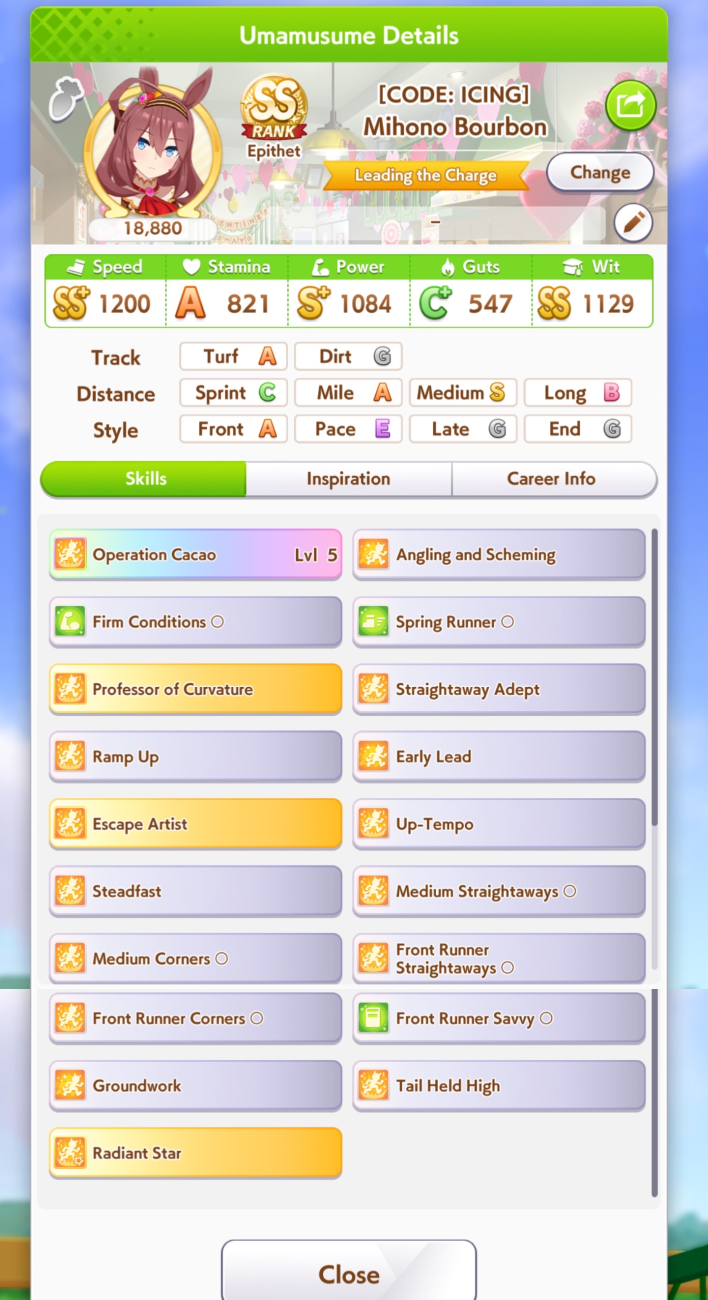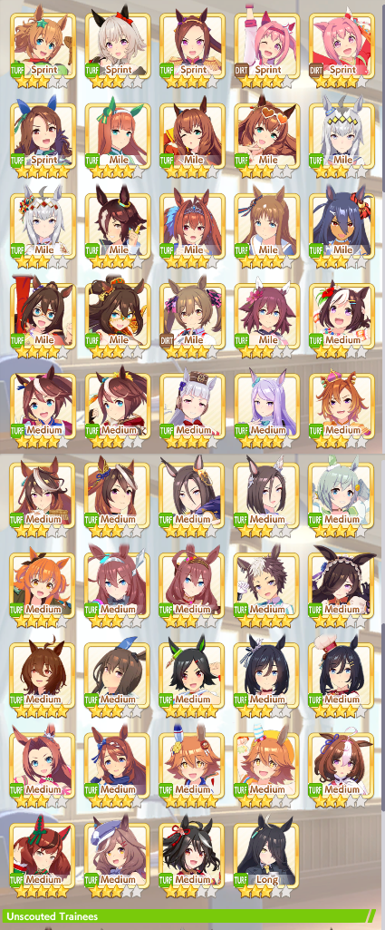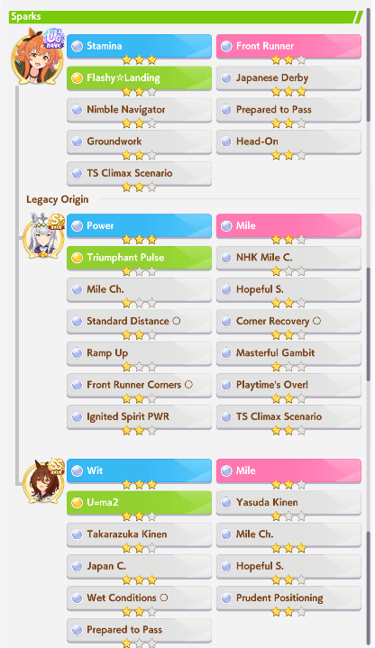 >>562316937i mean parent farming more or less is just doing a career run.. Except you race more for affinity but since you race a lot in MANT anyway even a failed ace run turns basically into a parent run. So it's not that different.Upside is that you don't care about capped stats (hitting 1100 is nice tho) but you have to use maybe suboptimal cards to get a guarnateed white/gold skill to try to pass downI have my own 9* power 6* medium parent (unity cup tho so not as high affinity) because I just got lucky, got 3* power 2* medium on 2 Uma and just ran both together until I got a 3rd one by chance which was also 3* power 2* mediumPeople borrow her like crazy now for the next CM lol
