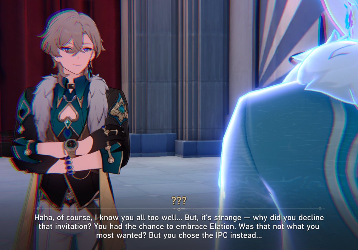 >>5623224944.0 elaborates on both why Aventurine is a possible Fool and why he isn't.>Sparkle: To become a Fool, one must experience at least one such instance of destiny: the moment of masking one's face.>Sparkle: Through the mask's eyeholes, we gain a different perspective, finally seeing how the universe is simply churning with endless jokes and the absurd nature of our existence as living beings.Aventurine is already wearing the facade of a carefree gambler. He's not though because he plans and prepares for every single gamble he does, according to 3.8 anyway.>Sparkle: If life's cruel, don't beg for fairness. Dance! Shake away that sadness until it's all well-mixed with the joy in your body>Sampo: Don't be too shocked, you two. Let me share a little secret about how we Masked Fools stay mentally healthy...>Sampo: Drink a mood-lifter like "Bomb's First Drop," and all the harmful memoria in your body — you know, the pain, the worries — gets purged in one go.>Sampo: That's how Fools pull pranks and have a blast without a shred of guilt.Aventurine can't let go of the sadness and the survivor's guilt. That's why he joined the IPC instead of the Tavern. From the character stories, Aventurine thought he could still payback or do something for his planet at the time. Dunno if this sadness and guilt changed after his walk through nihility