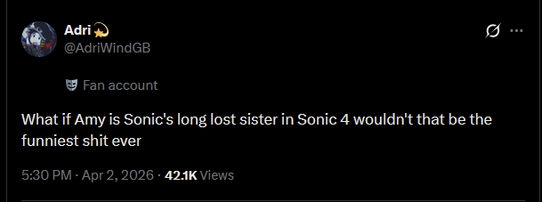 Sonic works and has lasted so lont because he's this mishmash of east and west, usually with the east making the series with this idea of the west, and has very unique character designs. Sonic suddenly being fully western-controlled would actually be the thing that actually sends Sonic to the grave.
