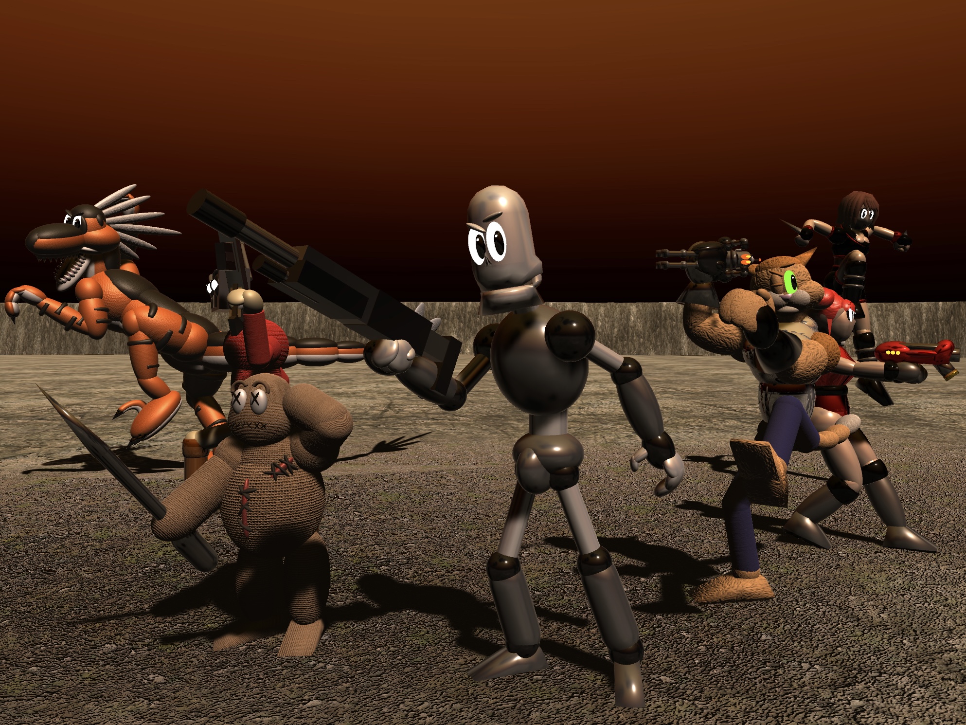 >>562349381I can give a breakdown but I would never direct something like that with so many errors.In addition to what I have described in >>562349226 and >>562349585, there's also a lot of misclassified dates: the art of Novarg the Wyrm and Blaster, said to have been made in "2023", was actually made in 2016; the Banana Man, said to have been made in "2026" is actually from 2015.Worse yet, there's also a random splice from a completely unrelated comic I was doodling in the office called "Grievances, inc." (pictured is a test render) that has nothing to do with the Fygooniverse. To give you an idea as to how fundamentally wrong it is, that would be like putting in art of Wave Race for Game Boy in a slideshow about Super Mario.