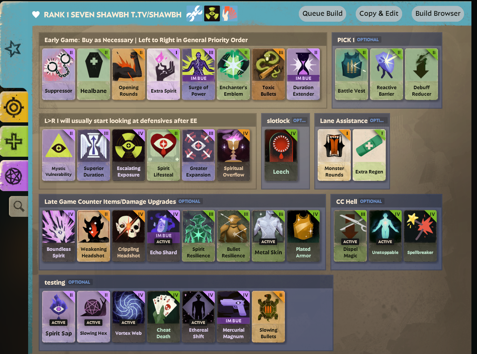 >>562343873gun venator but warden is better as a raw m1gger, venator's melee build is much stronger than his gun.try out gun doorman, as in pure orange damagemaxxing (hi vel -> active rel -> intensifying magazine -> optional: titanic mag, swift striker -> express shot -> sharpshooter -> if tanky enemies ie abrams: siphon bullets and toxic bullets -> vampburst -> optional: glass cannon, weighted shots -> any utility if needed, knockdown silence wave etc)