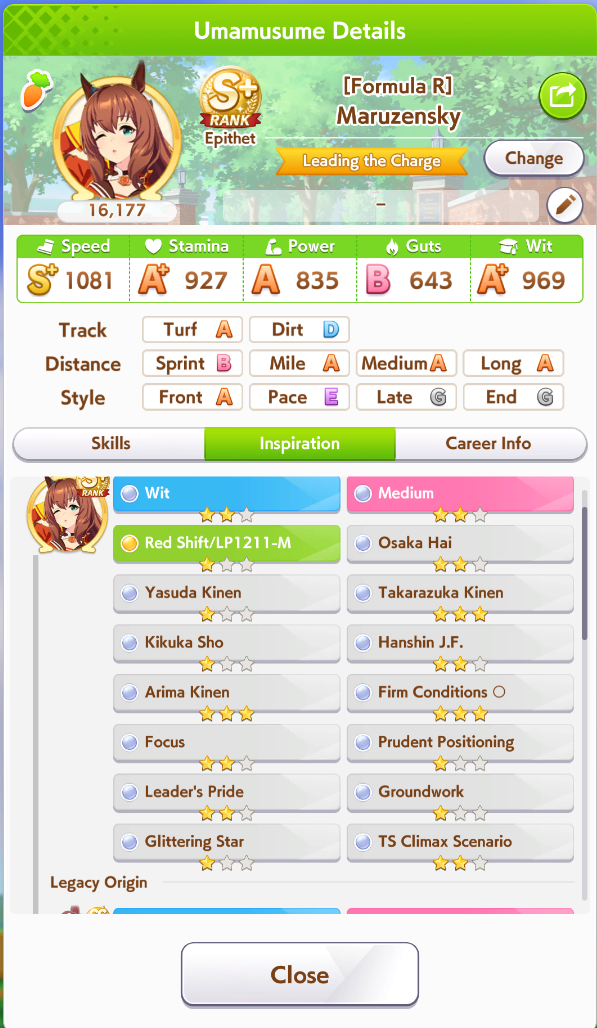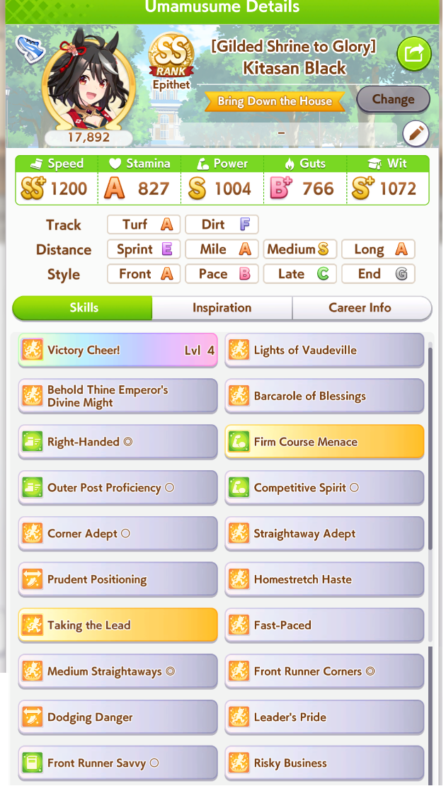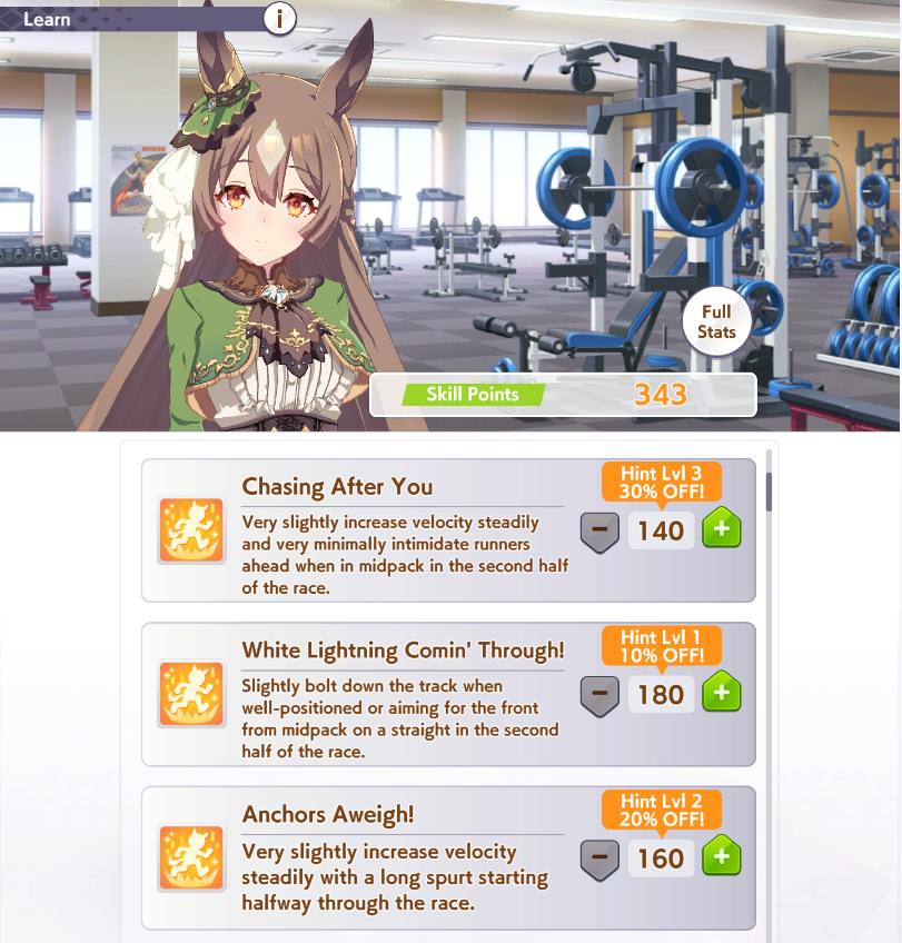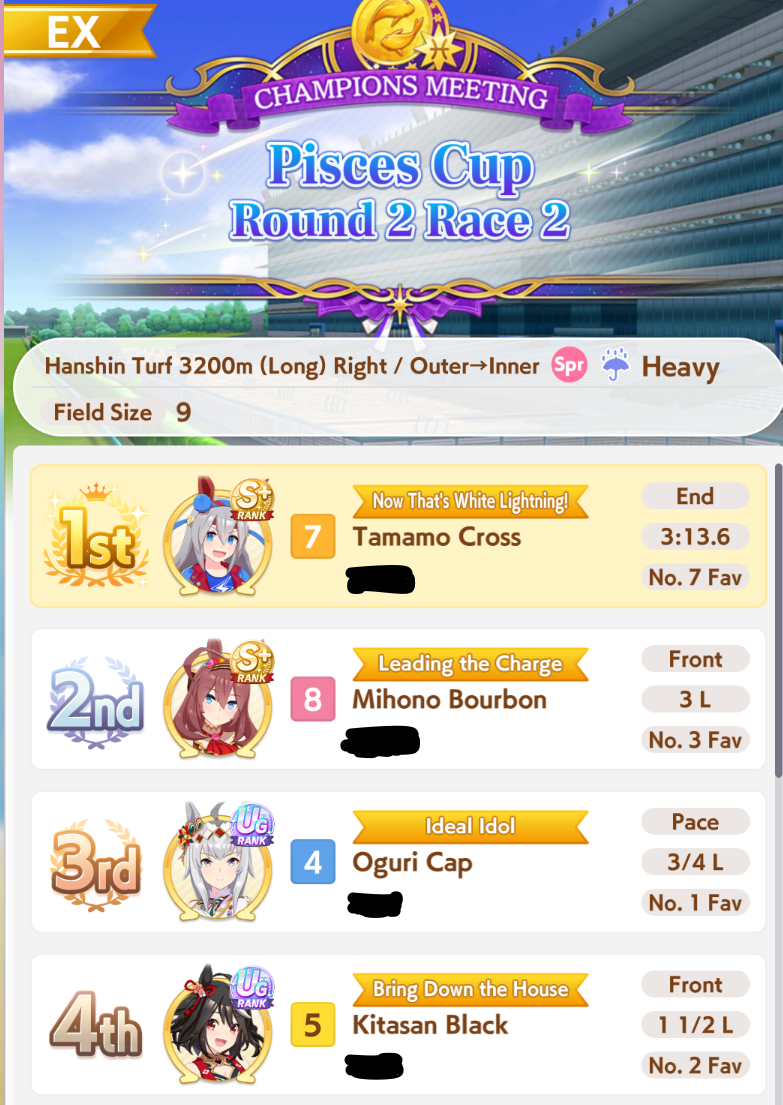 >>562372534Good choice, I will too be pulling on Nishino and Tachyon banners, since I'm a pace chaser main, I already have Taiki but having both is like having Ryan+Dober for late surgers>I do enjoy parent grinding So do I, I enjoy this game in general a lot>Blaze BrianShe was very strong when released but not anymore with the power creeped Umas, but she is still viable and a strong oshi choice, with the right knowledge and inherited uniques she will win games>>562372593You can skip Nishino and just borrow her, I agreeBut having the possibility to customize your own legacy has so much value to me, I use borrows to get insane rolled Umas and I pair them with my good average onesDoing this you can even get 3 inherited uniques or 4 depending on your luckIt's comfy