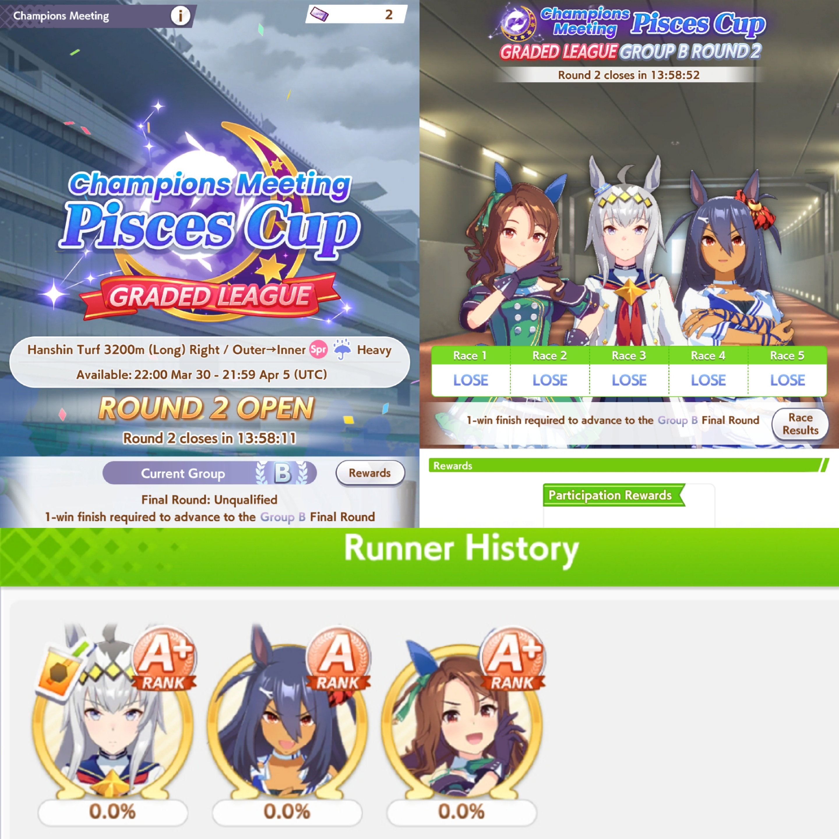>7th 8th 9th EVERY raceI was always struggling but this is genuinely hopeless. I can't stand seeing my girls lose every time and I accidentally enrolled my wife to the team this time. I feel like I'm sending out my girls to die for that pity participation box...