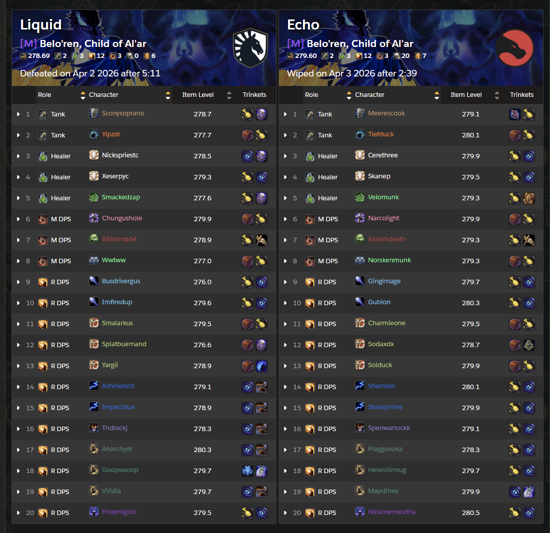 >blizzard tries everything to make the race more entertaining>the last boss is a weakaura slopfest>race has the lowest viewership to dateWhy are they tuning the entire raid around 2 guilds again?
