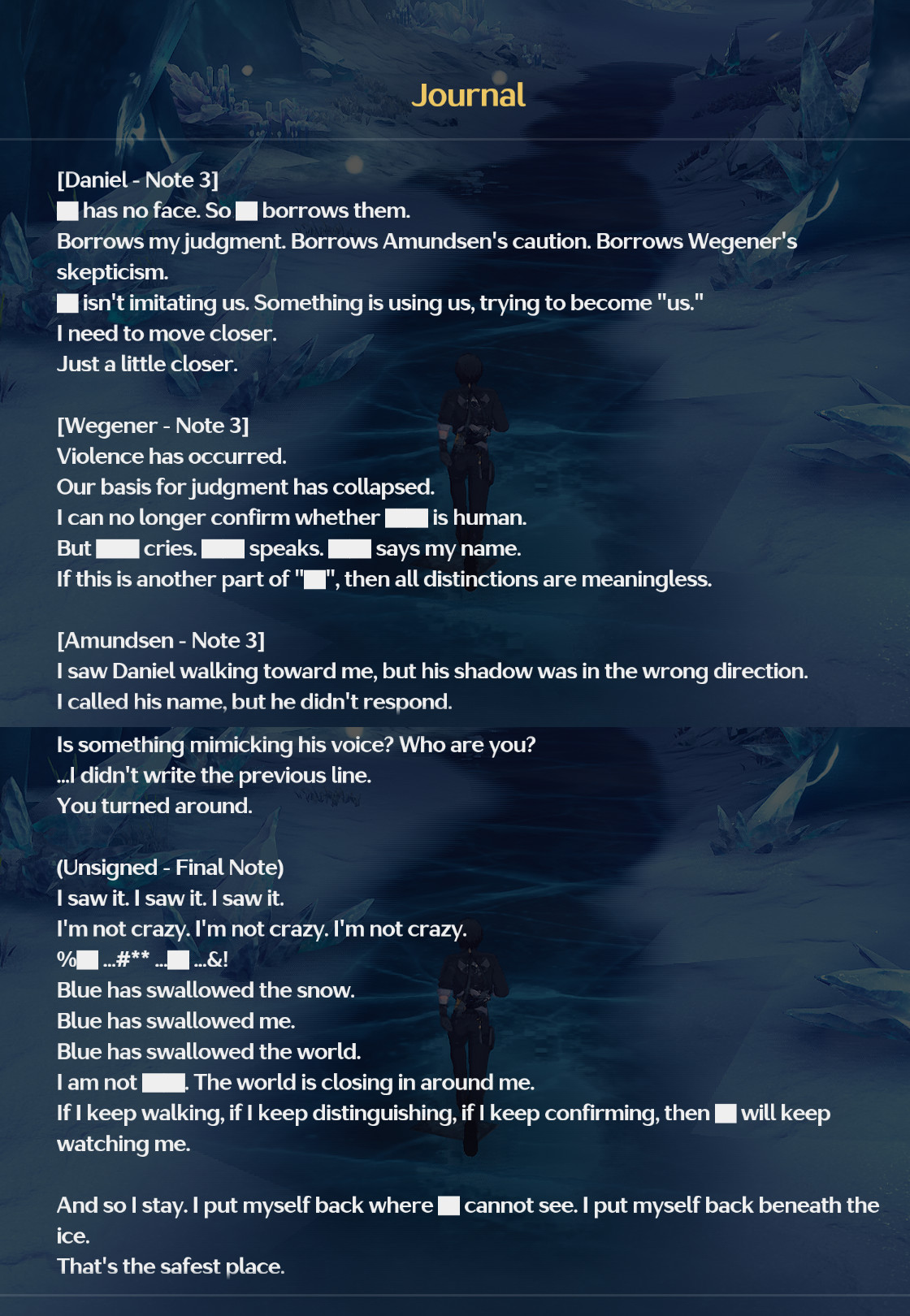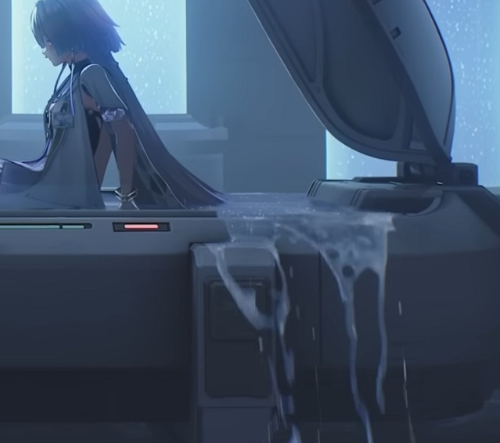 Aleph-One watches her from afar. In the nauseating dead silence, every second of her existence, every etched second, the Void sears her vitals. Stripped of all her glamorous, fragile shells, she merely attempts to hold onto you, demanding an answer from this world: "Why is it that people always look forward to tomorrow?"
