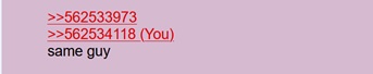 >he's even back to his samefagging ways