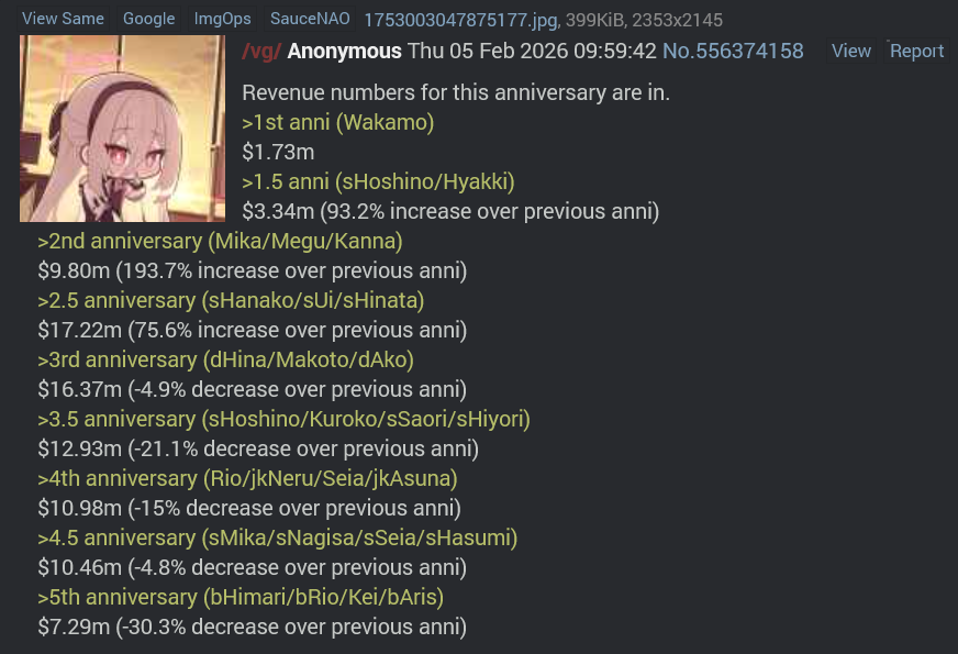 >>562442786Look at the revenue for Mika and say that again with a straight face. Hell even S.Hanako did great.