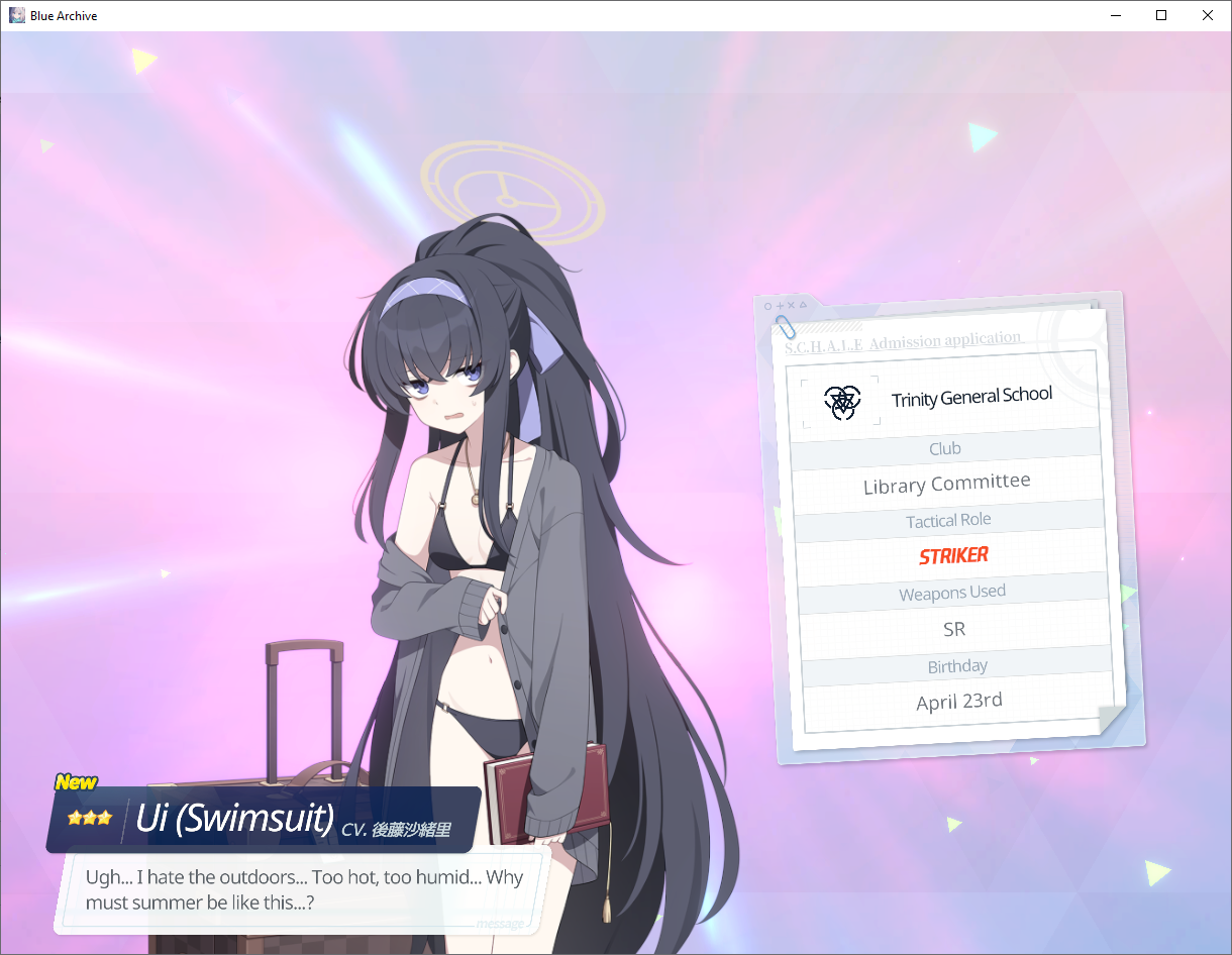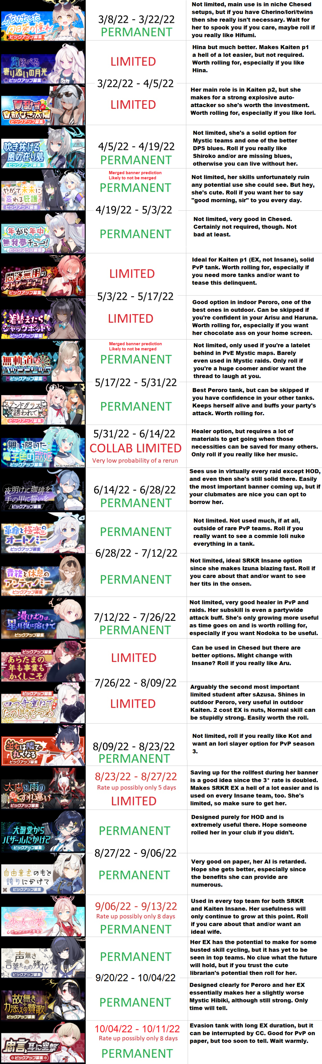 Previous Thread: >>562399013>Guides, Resources and useful links:https://rentry.org/bagguides>/bag/Circles/Clubs/Friends:https://rentry.org/holdingthebag>4koma, Manga, Side Content, PVs & Shortshttps://rentry.org/bacontent>>(JP) – JST>Banners:>4/1 After Maint – 4/15 10:59Akane (School)Seia (Limited)Asuna (School – Limited)Karin (School – Welfare)Toki (Bunny)>News:Patch notes: https://bluearchive.jp/news/newsJump/645>Events:Code: BOX - The Shadow Approaching Millennium – 4/1 After Maint – 4/15 10:59Balancing Schale's Books with the General Student Council – 4/15 11:00 – 4/21 10:59>Content:Joint Firing Drill (Breakthrough) – 4/1 After Maint – 4/8 3:59Grand Assault: Perorodzilla (Field – Torment w/Heavy & Special Armor) – 4/8 11:00 – 4/15 3:59Limit Break Assault: Tiphareth (Indoor – w/Elastic Armor) – 3/19 11:00 – 4/21 3:592x Lesson/Scrimmage – 4/1 4:00 – 4/8 3:592x Hard – 4/8/ 4:00 – 4/15 3:592x Commissions/Bounty – 4/15 4:00 – 4/21 3:59>>(GLOBAL) – UTC>Banners:>3/31 2:00 – 4/7 1:59SubaruUi (Swimsuit – Limited)Hinata (Swimsuit – Limited)ReisaMine>News:Patch notes: https://forum.nexon.com/bluearchive-en/board_view?thread=3403455>Events:My Office: https://bluearchive.nexon.com/user/myoffice>Content:Grand Assault: Hieronymus (Urban – Torment w/Special & Light Armor) – 3/31 2:00 – 4/6 18:59Limit Break Assault: Tiphareth (Indoor – w/Elastic Armor) – 3/11 2:00 – 4/6 18:592x Normal – 3/30 19:00 – 4/3 18:592x Hard – 4/3 19:00 – 4/6 18:592x Bounty – 4/6 19:00 – 4/13 18:592x Account EXP – 4/10 19:00 – 4/12 18:592x Normal/Hard – 4/13 19:00 – 4/20 18:592x Account EXP – 4/17 19:00 – 4/19 18:592x Lesson/Scrimmage – 4/20 19:00 – 4/27 18:592x Bounty – 4/27 19:00 – 5/4 18:59