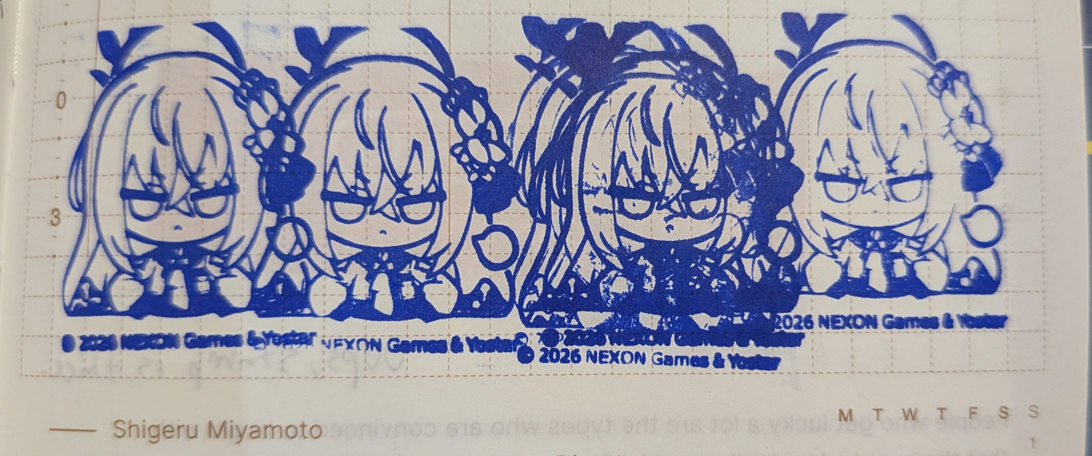 >>562444720it's nothing but the most generic character goods>character sprite, but acrylic stand>L2D, but t shirt>logos on random stationary thingsbut 90% of anime character goods are like thatI was tempted to use the stamp machine to make the arona stamp but I couldn't think of a time I'd actually use itbest thing I found in japan was a gacha machine selling nothing but Mika's faces, but korea had better goods