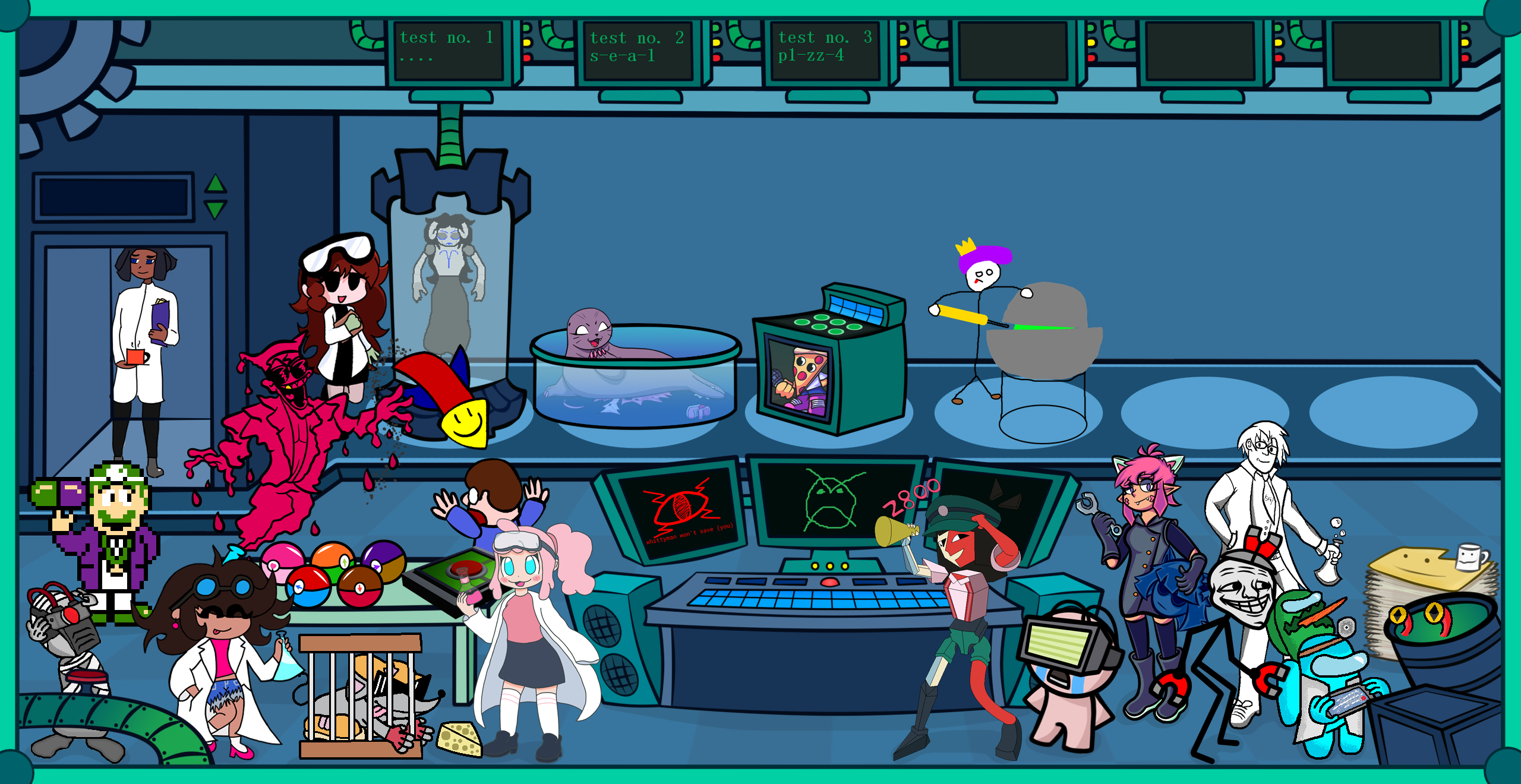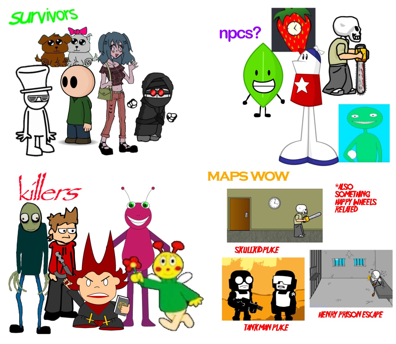 >>562973223Replace the Bug and the ARG one from the killers pile with a Homestuck character.>why?Cascade.Replace BFDI with Happy Tree Friends, and replace Homestar with Egoraptor